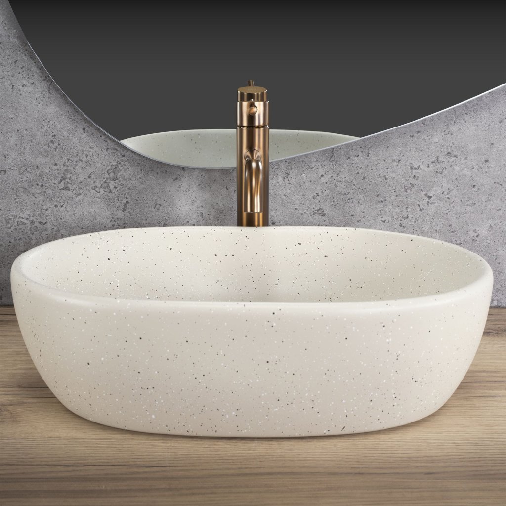 Keramické umyvadlo na desku REA Amelia 48x34,5 cm sandy
