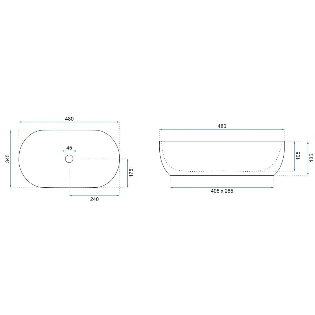 - Tvar: Elegantní ovál (480 x 345 mm).