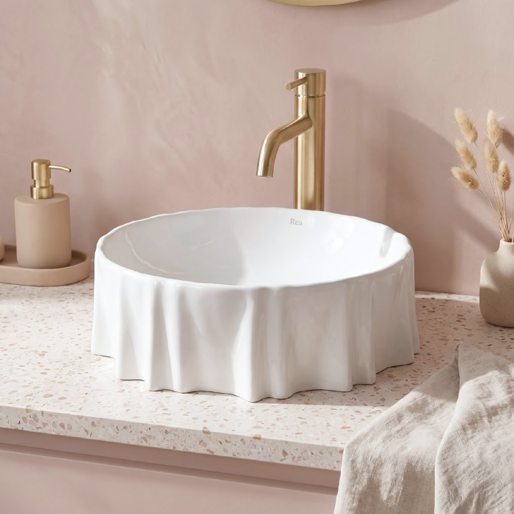 Toto umyvadlo na desku REA ANASTAZJA je volbou pro ty, kteří oceňují výrazný design a chtějí narušit monotónnost koupelnového interiéru. Spojení netypické formy s dekorem imitujícím kámen z něj dělá funkční ozdobu, která na sebe strhne pozornost. Je ideálním řešením pro moderní i loftové interiéry, kde krásně kontrastuje s různými typy armatur.