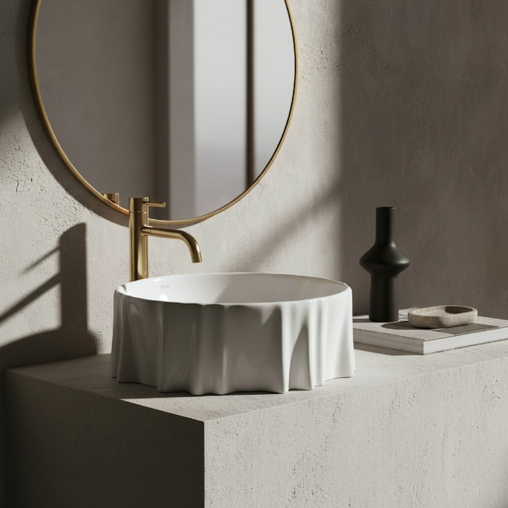 Ačkoliv umyvadlo vizuálně připomíná kámen, je vyrobeno z kvalitní glazované sanitární keramiky. To přináší zásadní uživatelské výhody: povrch je dokonale hladký, neporézní, vysoce odolný vůči poškrábání a především se velmi snadno čistí a udržuje hygienický. Získáváte tak surovou estetiku bez náročné údržby spojené s pravým kamenem.