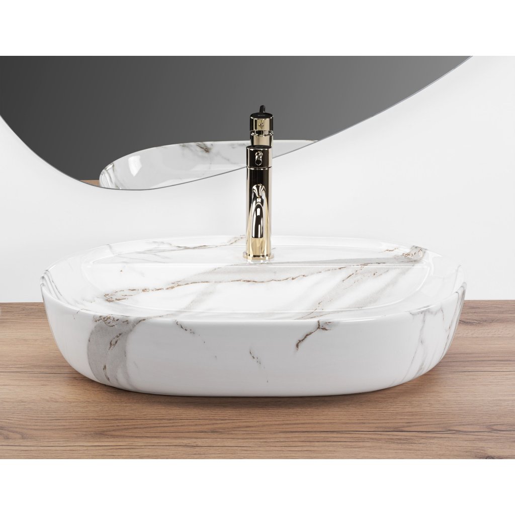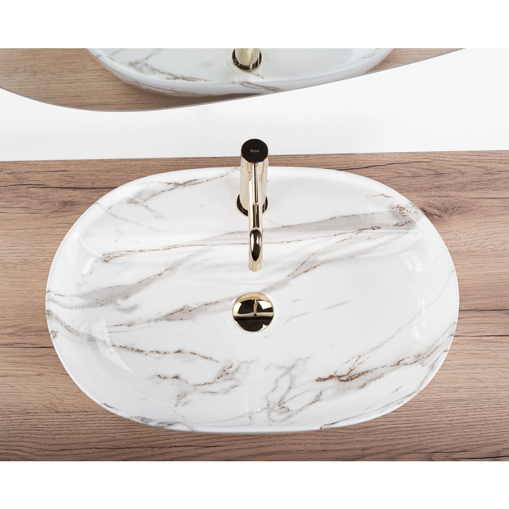 Keramické umyvadlo na desku REA AURA 61, lesklý mramor
