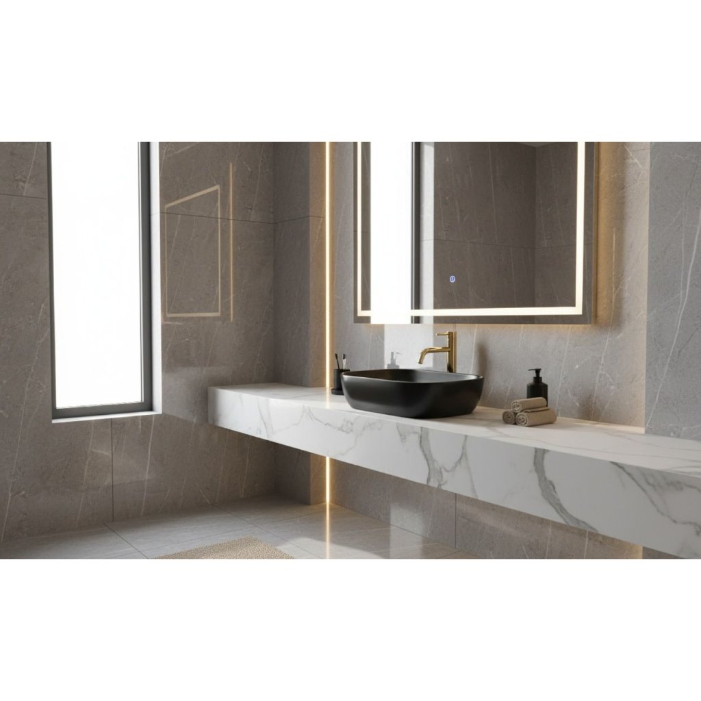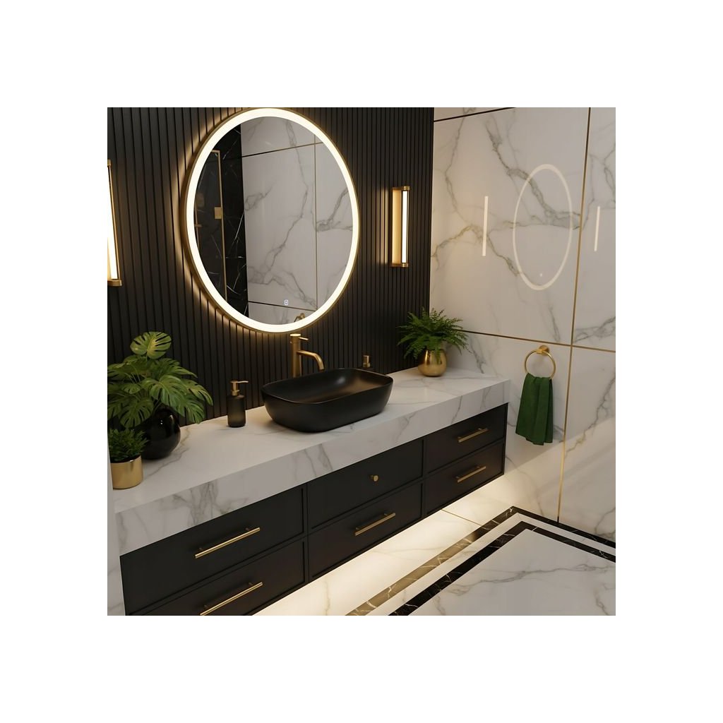Montažní provedení na desku umožňuje efektivní využití prostoru a zároveň krásně vystavuje design umyvadla. Tento model je ideální pro ty, kteří chtějí do své koupelny přinést jedinečný, luxusní vzhled s nádechem moderního loftového stylu.