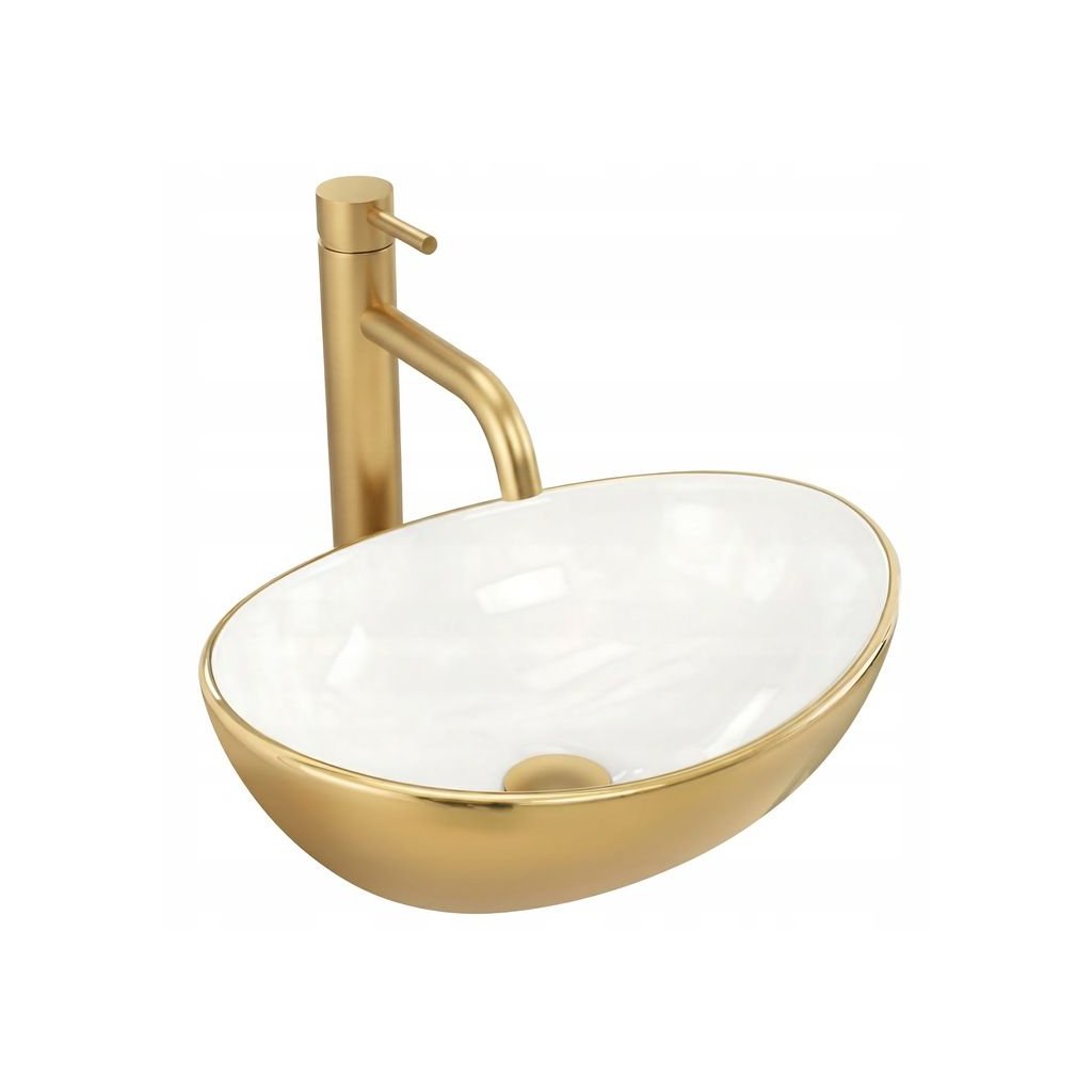 Keramické umyvadlo na desku REA BASARO SOFIA bílá/zlatá