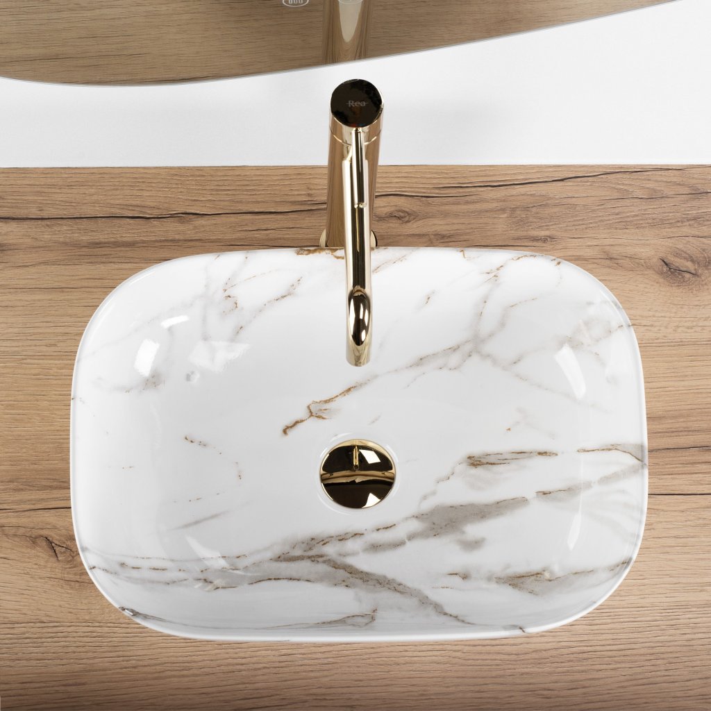 Keramické umyvadlo na desku REA BELINDA STONE - AIAX béžový mramor lesk