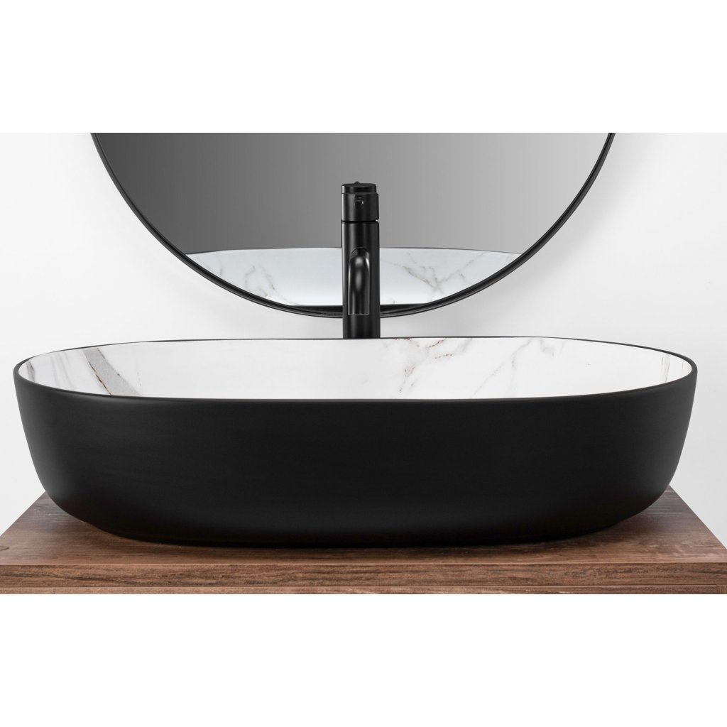 Keramické umyvadlo na desku REA CLEO 60,5x41 cm černé mat/mramor