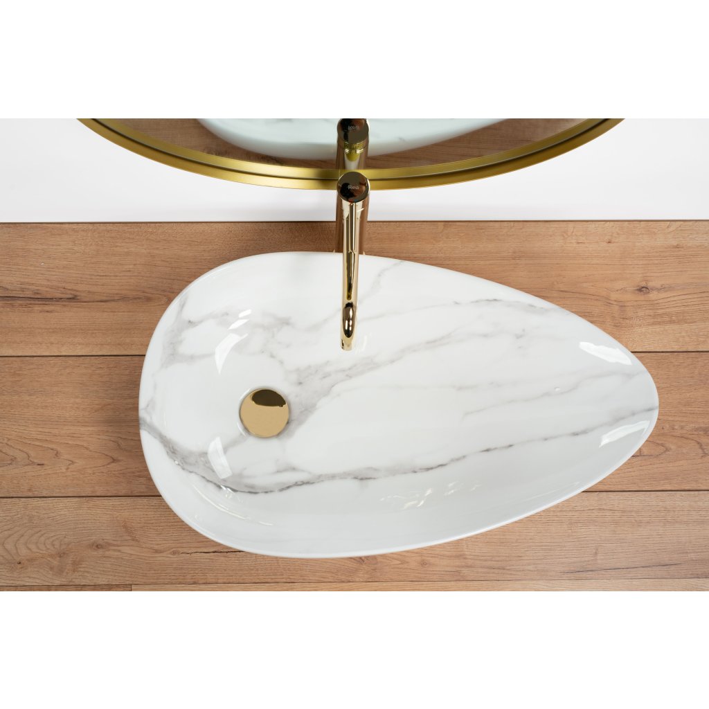 Keramické umyvadlo na desku REA GRETA STONE šedý mramor lesk