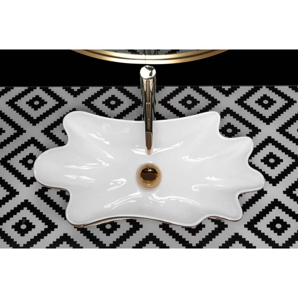 Keramické umyvadlo na desku REA INFINITY + výpusť, bílé/zlaté