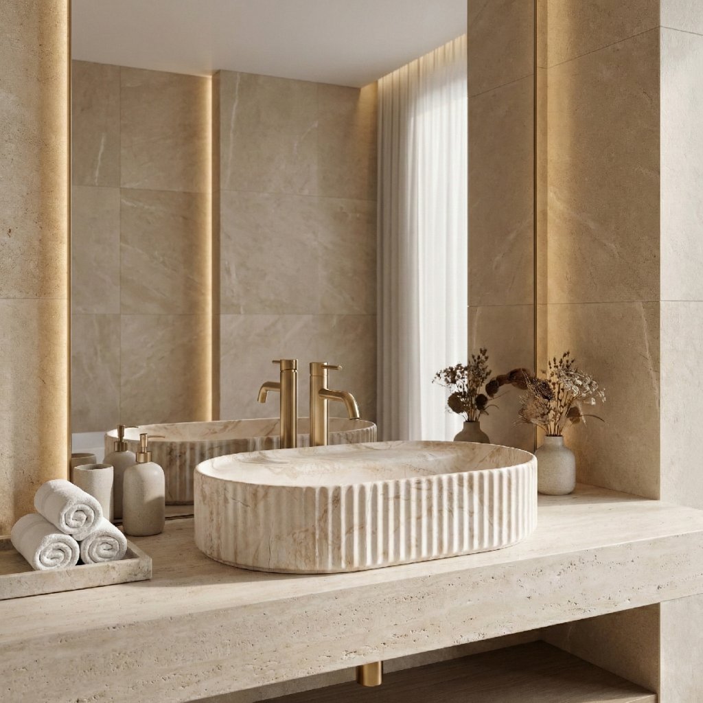 - Vroubkovaná struktura: výrazné svislé reliéfy dodávají umyvadlu moderní a dynamický vzhled