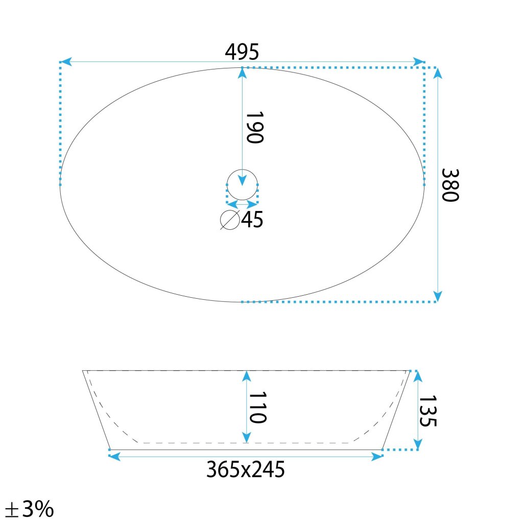 - Tolerance rozměrů: ±3%