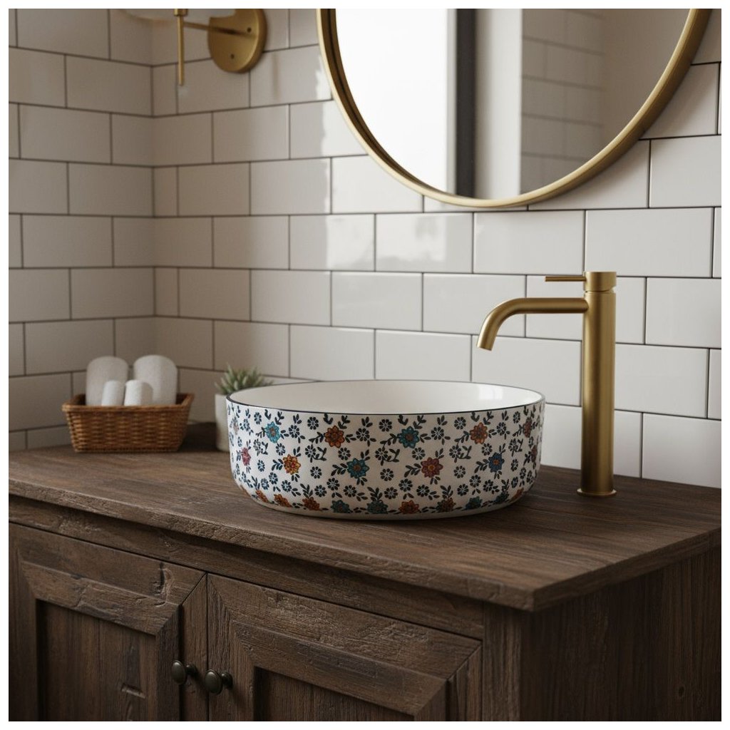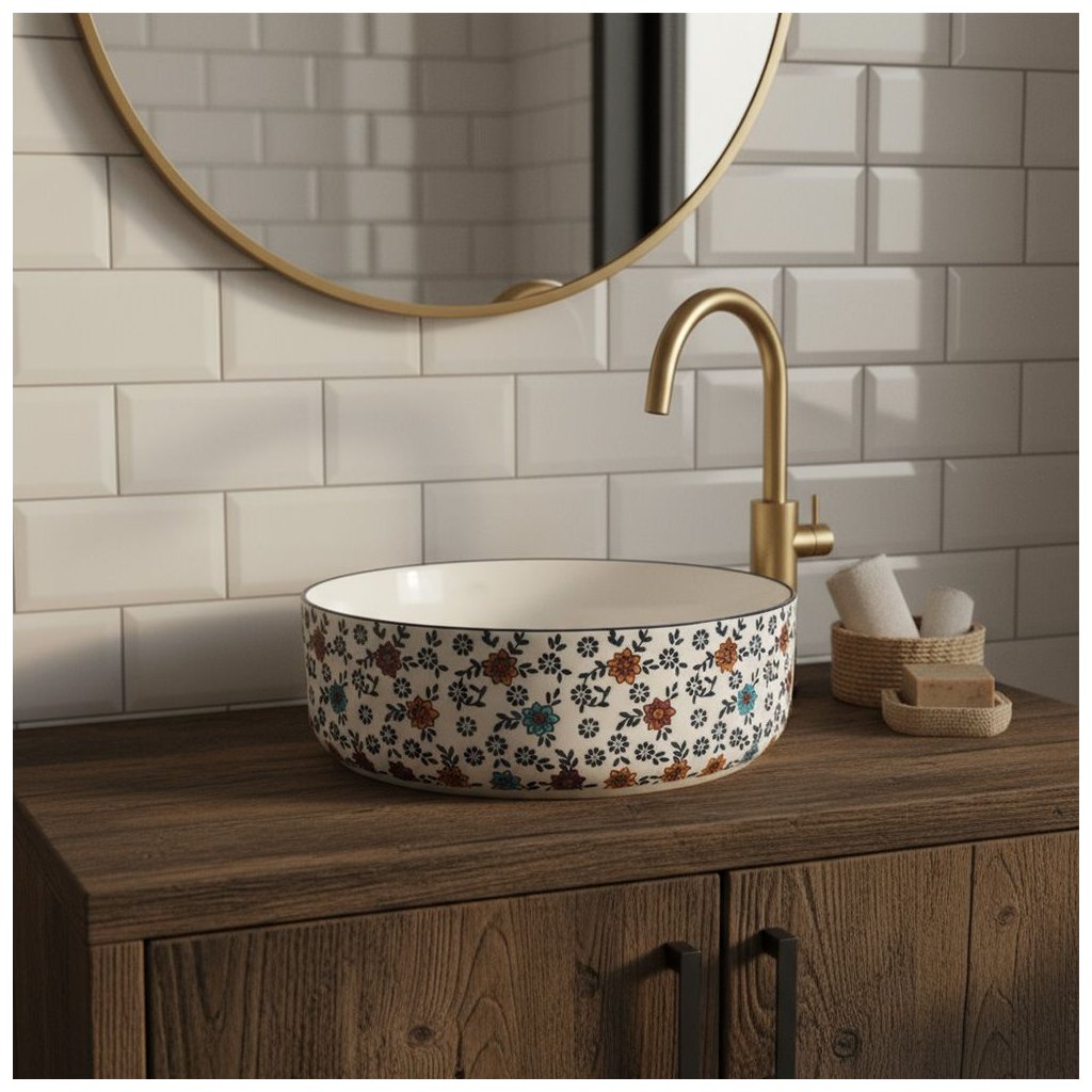 Matné provedení dodává umyvadlu moderní a elegantní charakter, který je příjemný na dotek. Dekorativní květinový vzor na vnější straně mísy činí z umyvadla centrální dekorativní prvek každé koupelny. Okrúhlý tvar mísy a absence otvoru pro baterii či přepad umožňují montáž s vysokými stojícími nebo podomítkovými bateriemi a zároveň zdůrazňují minimalistický, hladký design. Každý detail je pečlivě zpracován, což činí umyvadlo výrazným a funkčním doplňkem koupelny.