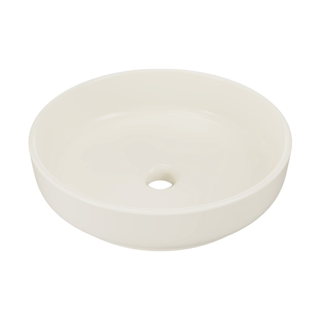 S rozměry 40x40 cm a výškou 12 cm je umyvadlo vhodné i pro menší koupelny. Kulatý tvar a teplá barva zajišťují, že umyvadlo se hodí k jasným, přírodním aranžmá. Umyvadlo je určeno k postavení na koupelnovou desku či skříňku a má glazovanou zadní stranu.