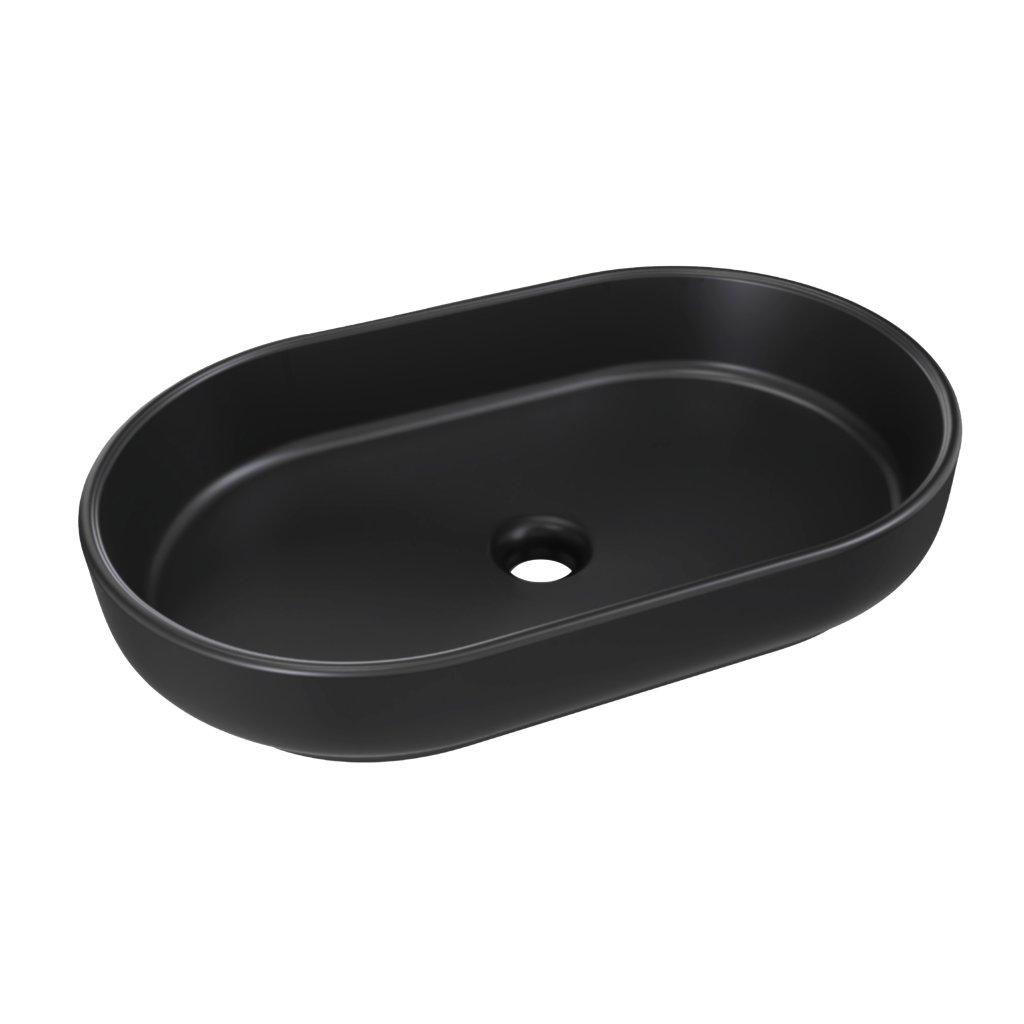 S rozměry 55x35 cm a výškou 12 cm je umyvadlo praktickou volbou pro hlavní koupelny. Oválný tvar a matná černá barva zajišťují, že umyvadlo se stane výrazným designovým prvkem. Umyvadlo je určeno k postavení na koupelnovou desku či skříňku a má glazovanou zadní stranu.