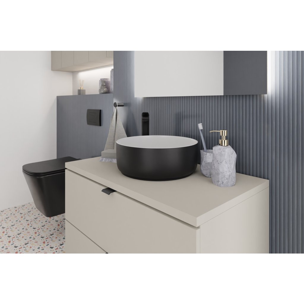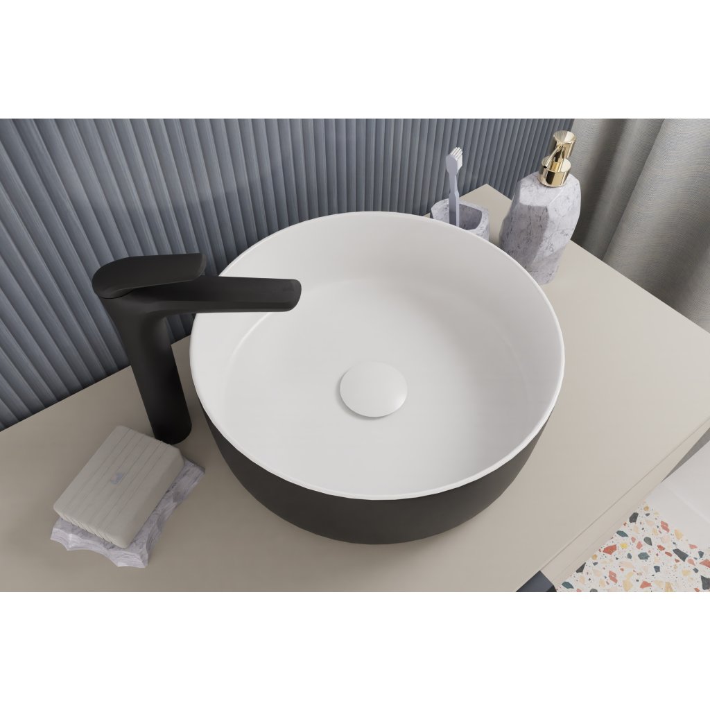 S kompaktními rozměry 36x36 cm a výškou 13 cm se umyvadlo hodí do malých koupelen a toalet. Je dostupné ve dvou barevných provedeních: matné bílé a matné černé, což umožňuje perfektní sladění s interiérem. Umyvadlo je určeno k postavení na koupelnovou desku či skříňku.