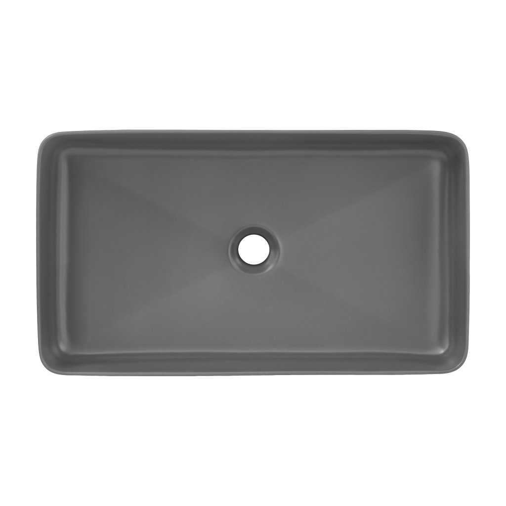 S rozměry 61x34 cm a nízkou výškou 11 cm je umyvadlo vhodné i pro úzké koupelnové desky. Obdélníkový tvar a matná šedá barva zajišťují, že umyvadlo je nejen funkčním prvkem, ale i diskrétním a elegantním doplňkem. Umyvadlo je určeno k postavení na koupelnovou desku či skříňku.