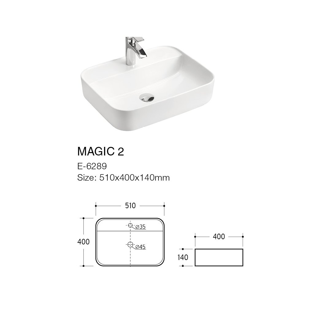 Obdélníkové umyvadlo MAGIC 50 navazuje na tyto vlastnosti a kombinuje je s moderním designem. Je vyrobeno z vysoce kvalitní sanitární keramiky s vysokým leskem. Umyvadlo disponuje jedním otvorem pro montáž stojánkové baterie (průměr 35 mm) a nemá přepad.