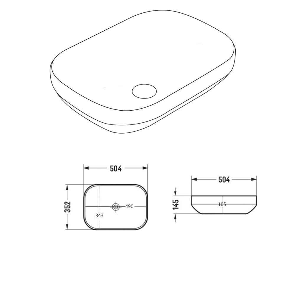 S rozměry 50,4x35,2 cm a výškou 14,5 cm se umyvadlo hodí do menších i standardních koupelen. Precizní obdélníkový tvar a unikátní matná barva zajišťují, že umyvadlo je nejen funkčním prvkem, ale i výrazným estetickým akcentem. Umyvadlo je určeno k postavení na koupelnovou desku či skříňku.