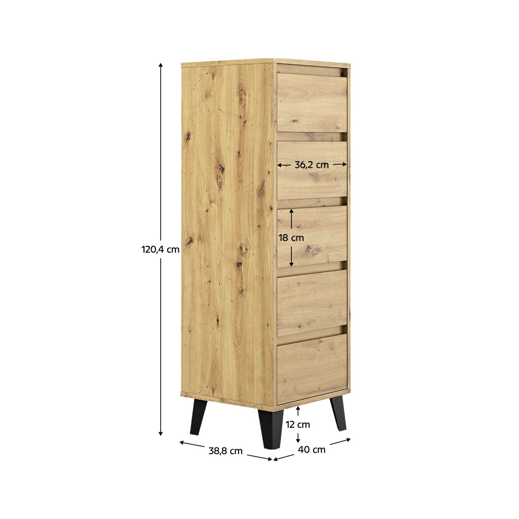 Komoda, dub artisan, BOGAN 5S40