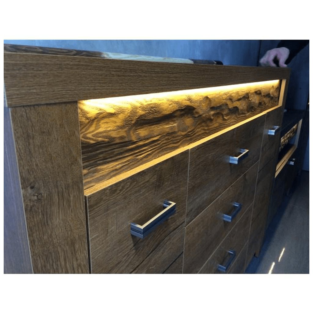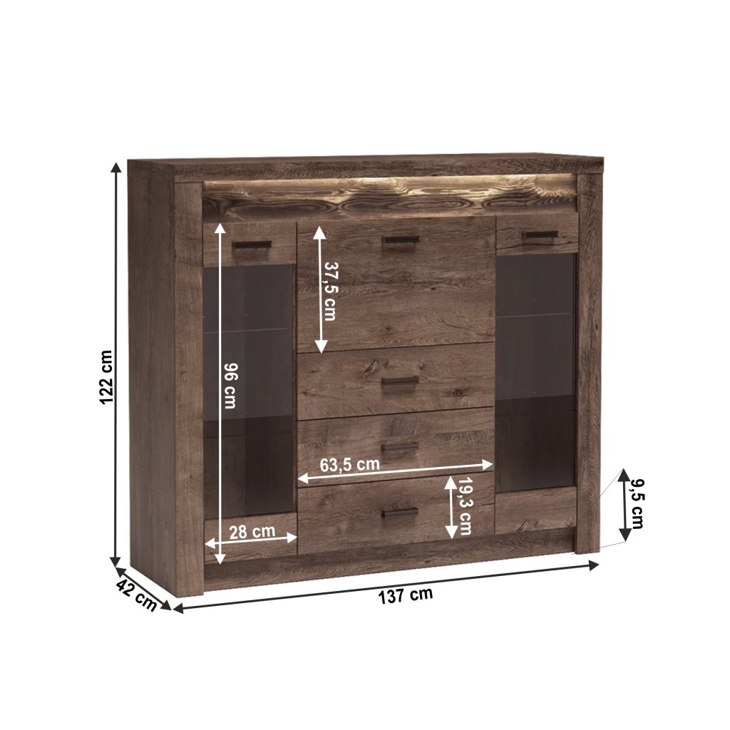 Komoda s vitrínami Inifinity 08Korpus hrubý až 48 mm, Tloušťka materiálu zbývající části: 16 mm, úchytky kovové