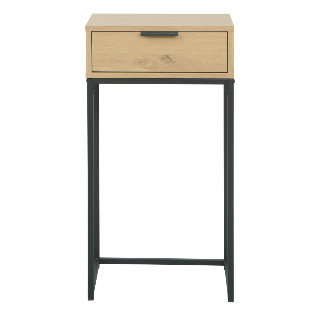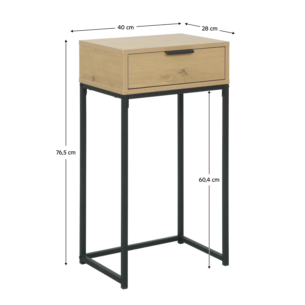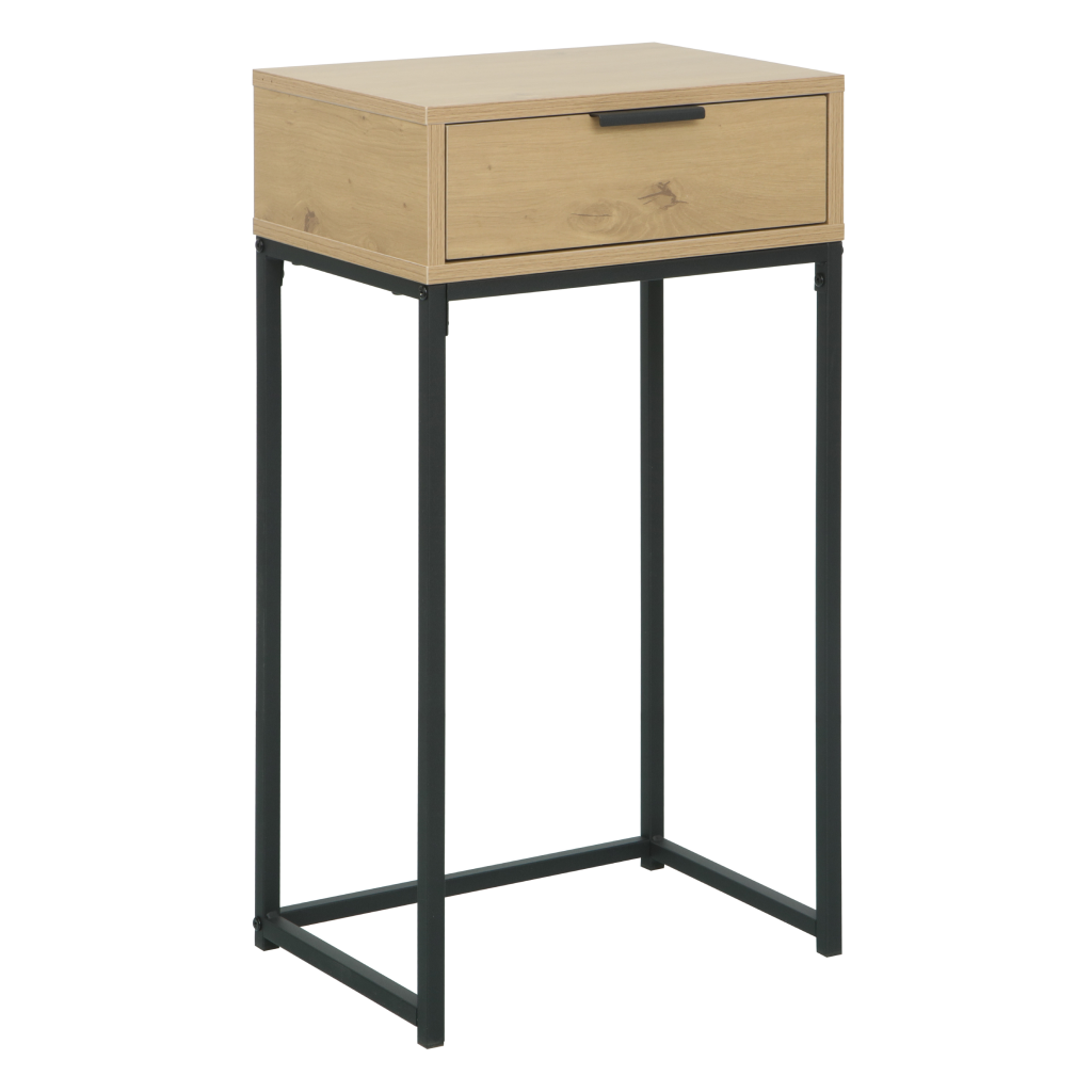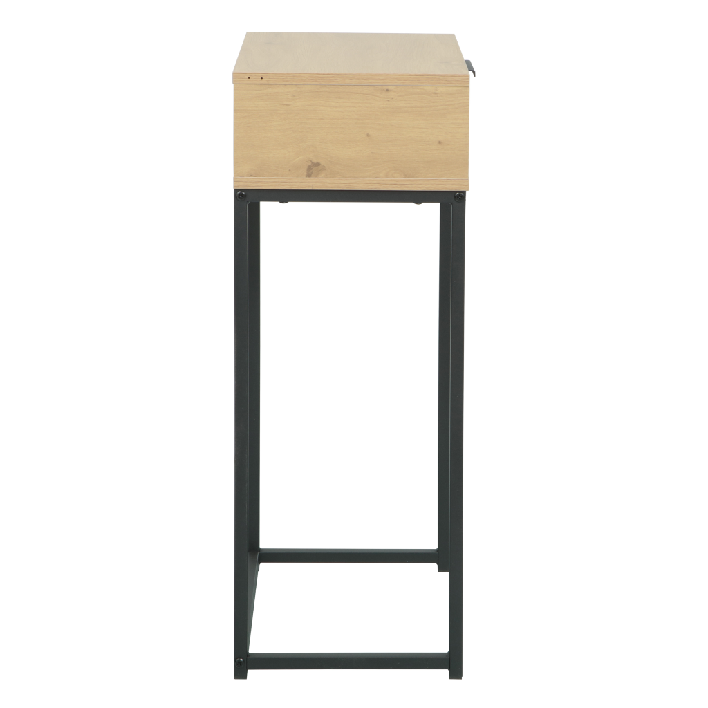 Tento multifunkční kousek nábytku skvěle poslouží nejen jako klasický konzolový stolek pro vystavení dekorací, ale také jako stylový noční stolek. Praktická zásuvka s kovovou úchytkou poskytuje diskrétní úložný prostor pro drobnosti, které chcete mít neustále po ruce. Kvalitní melaminová deska zajišťuje odolnost povrchu a snadnou údržbu při každodenním používání.
