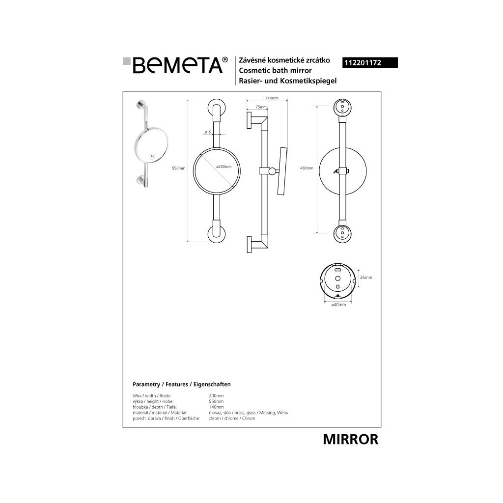 | Materiál: | Mosaz, zrcadlovina |