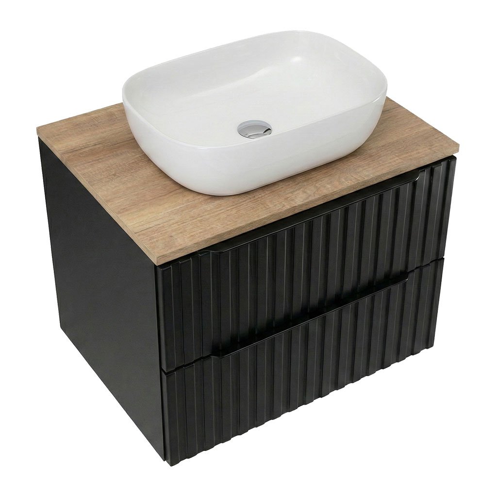 - horní deska z MDF v dekoru dub country pro umístění deskového umyvadla (bez otvoru pro umyvadlový sifon a montáž vodovodní baterie)