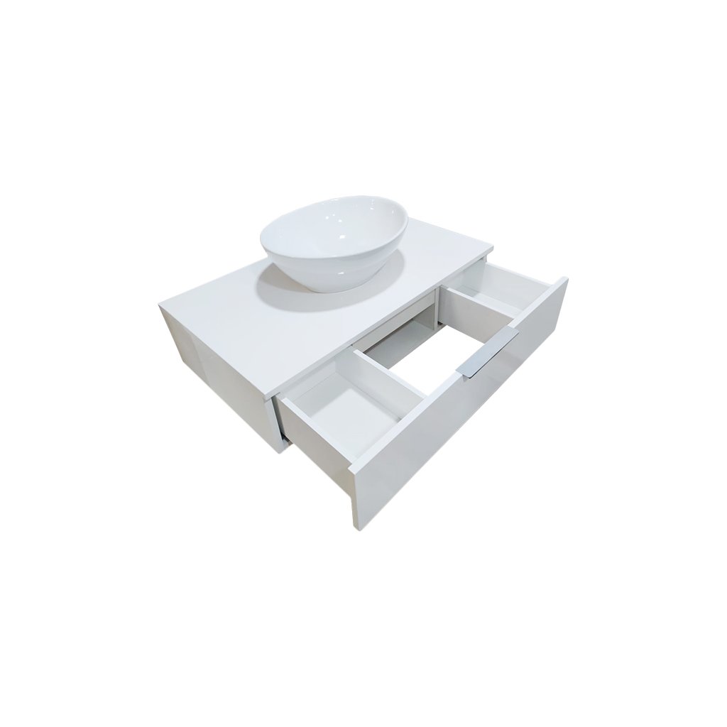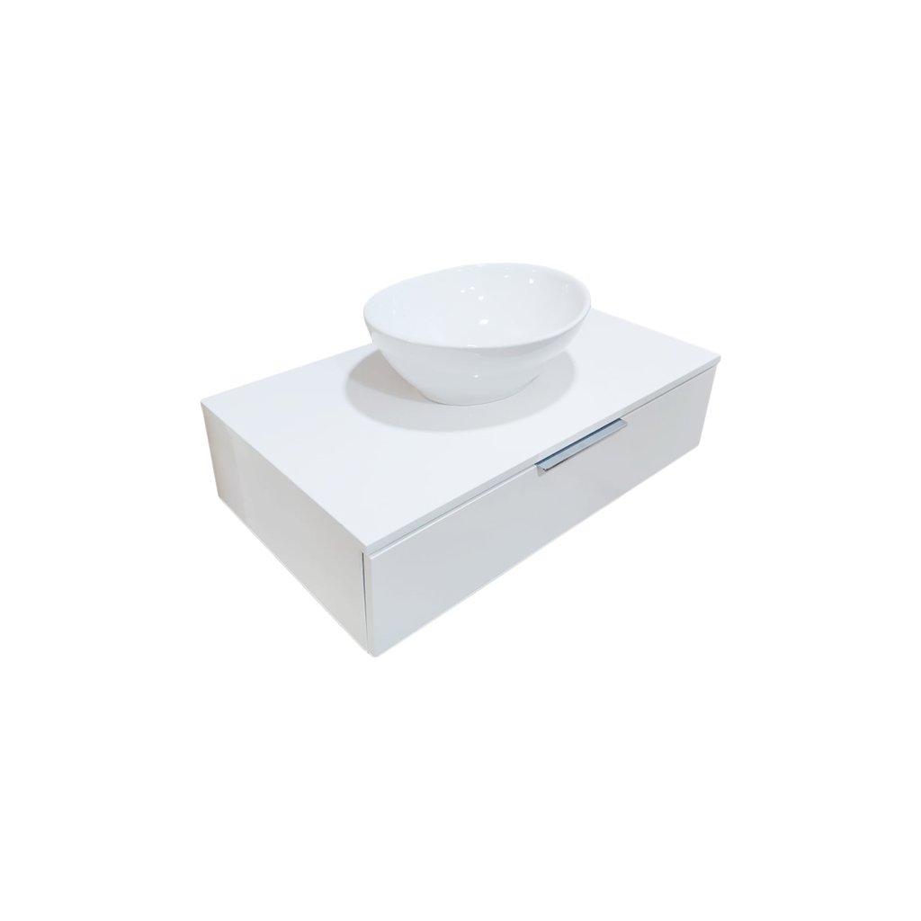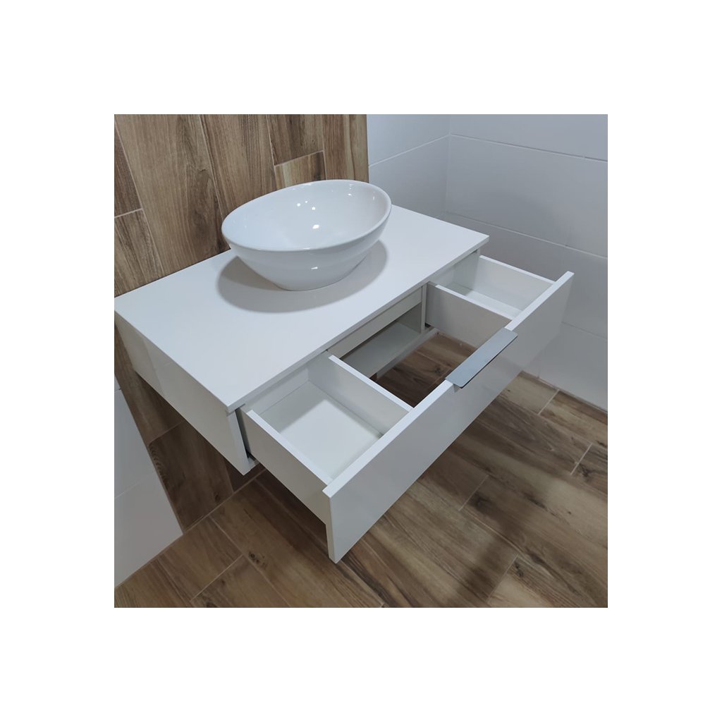 - horní deska: MDF, bílý lak, vysoký lesk, bez otvoru pro umyvadlový sifon a montáž vodovodní baterie