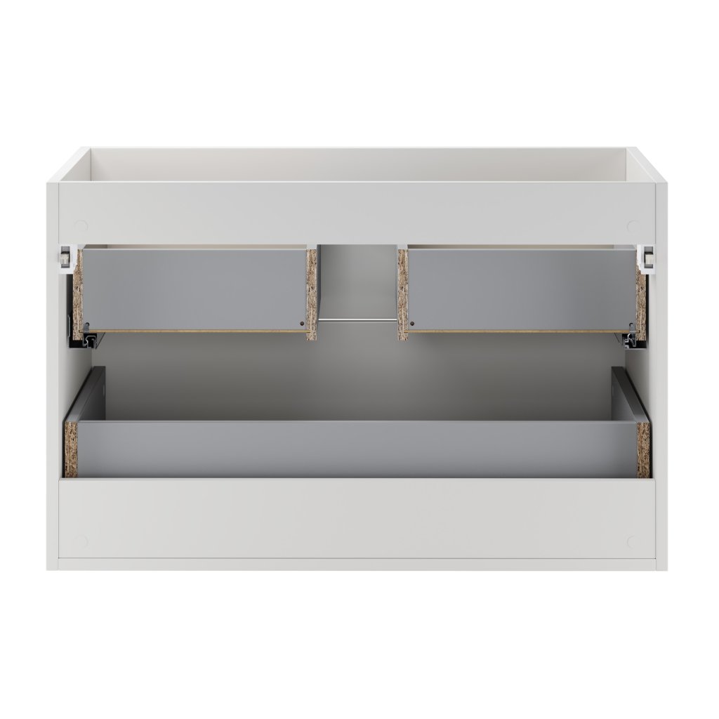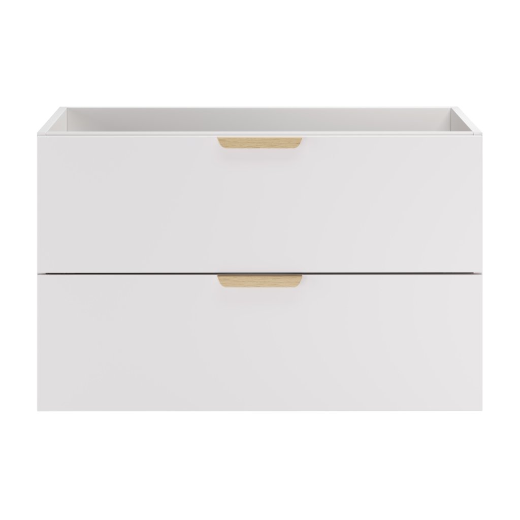 Úložný prostor tvoří dvě široké zásuvky, které poskytují dostatek místa pro přehlednou organizaci všech koupelnových nezbytností, ručníků i kosmetiky. Maximální uživatelský standard zajišťuje systém tichého dovírání (softclose), který zaručuje plynulý chod a bezhlučný dojezd zásuvek. Konstrukce z kvalitní laminované desky (LTD) s certifikací FSC garantuje vysokou odolnost proti vlhkosti a dlouhou životnost. Skříňka je určena výhradně k zavěšení na stěnu, což dodává nábytku levitující efekt a výrazně usnadňuje údržbu podlahy. Tento model z polské produkce vyniká precizním zpracováním a důrazem na minimalistické detaily.