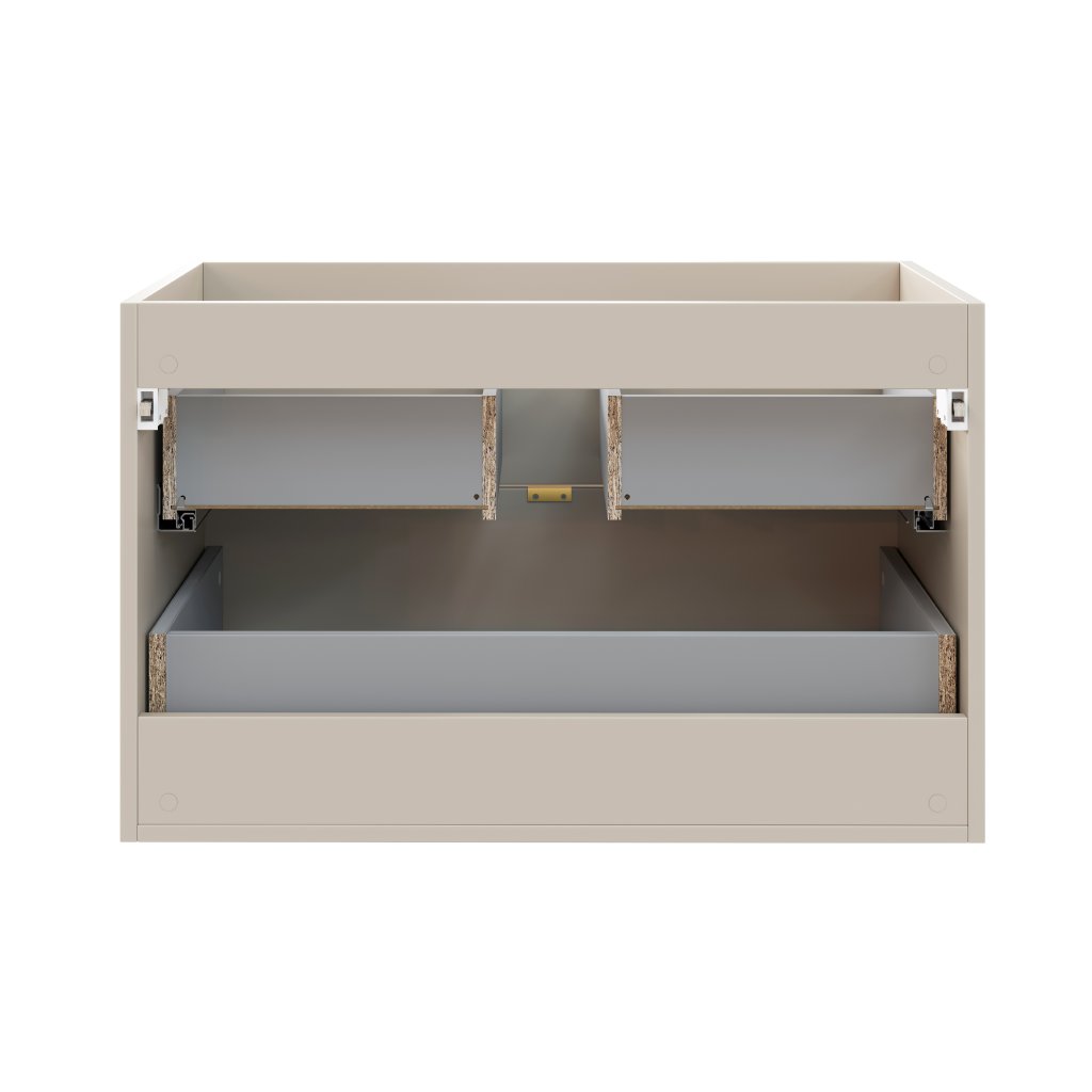 Umyvadlová skříňka z kolekce Dalia Cashmere o šířce 80 cm představuje ideální volbu pro ty, kteří hledají nábytek s čistými liniemi a nadčasovou barevností. Subtilní odstín kašmírový mat působí velmi přívětivě a vnáší do interiéru pocit klidu a tepla. Výrazným prvkem této řady je ergonomická výška 50 cm, která ve srovnání se standardními modely působí moderněji a opticky provzdušňuje prostor koupelny. Hladká čela bez frézování podtrhují minimalistický charakter celého modulu.