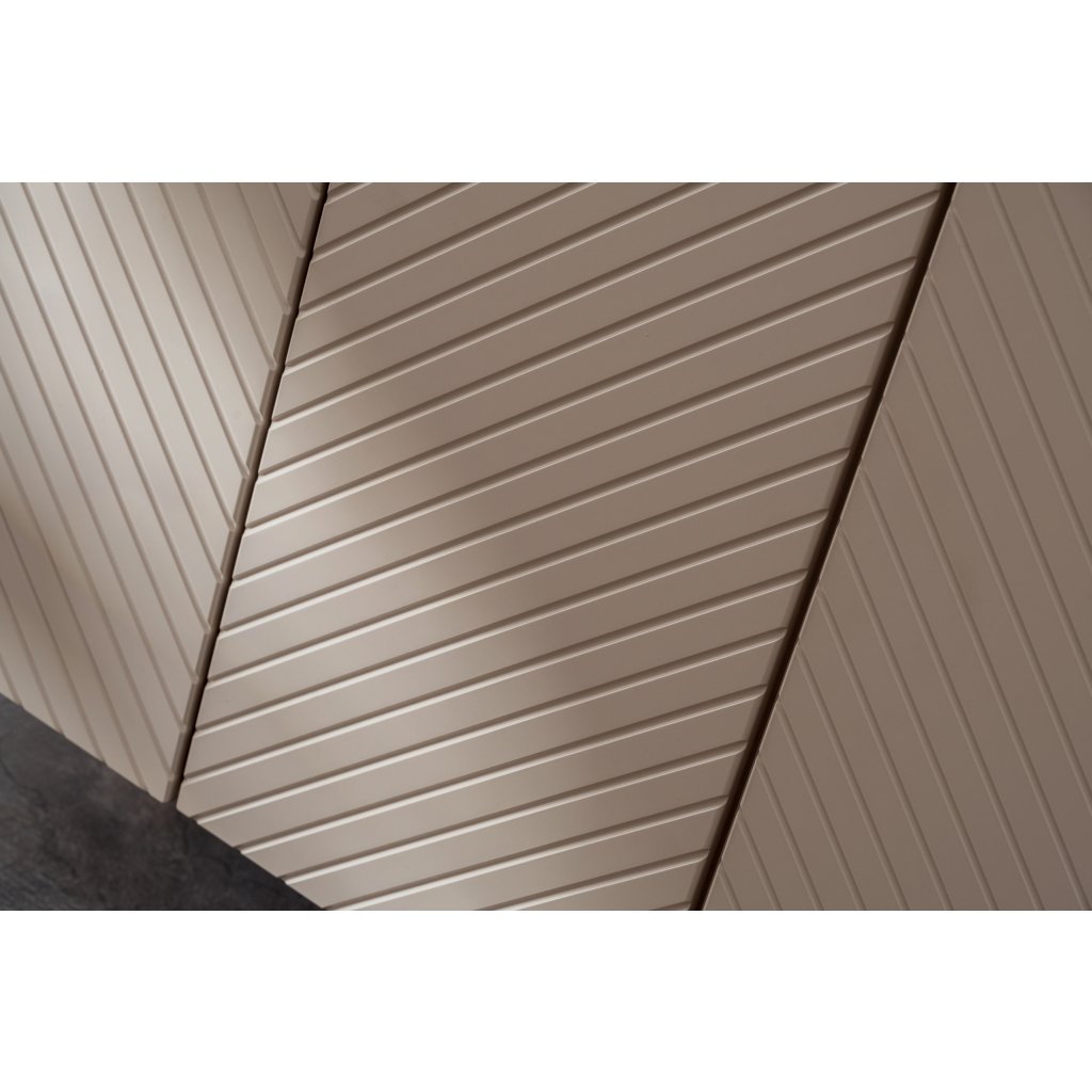 Dvoudveřová skříňka pod umyvadlo z kolekce Viva Cashmere je ideální volbou pro ty, kteří hledají v koupelně harmonii a moderní styl. Jemná barva kašmírový mat působí luxusně a zároveň útulně. Hlavním vizuálním prvkem jsou třírozměrná frézovaná čela se vzorem rybí kosti, která dodávají nábytku hloubku a originální texturu. Díky kompaktní hloubce necelých 40 cm se skříňka skvěle hodí i do menších prostor, aniž by ztrácela na praktičnosti.