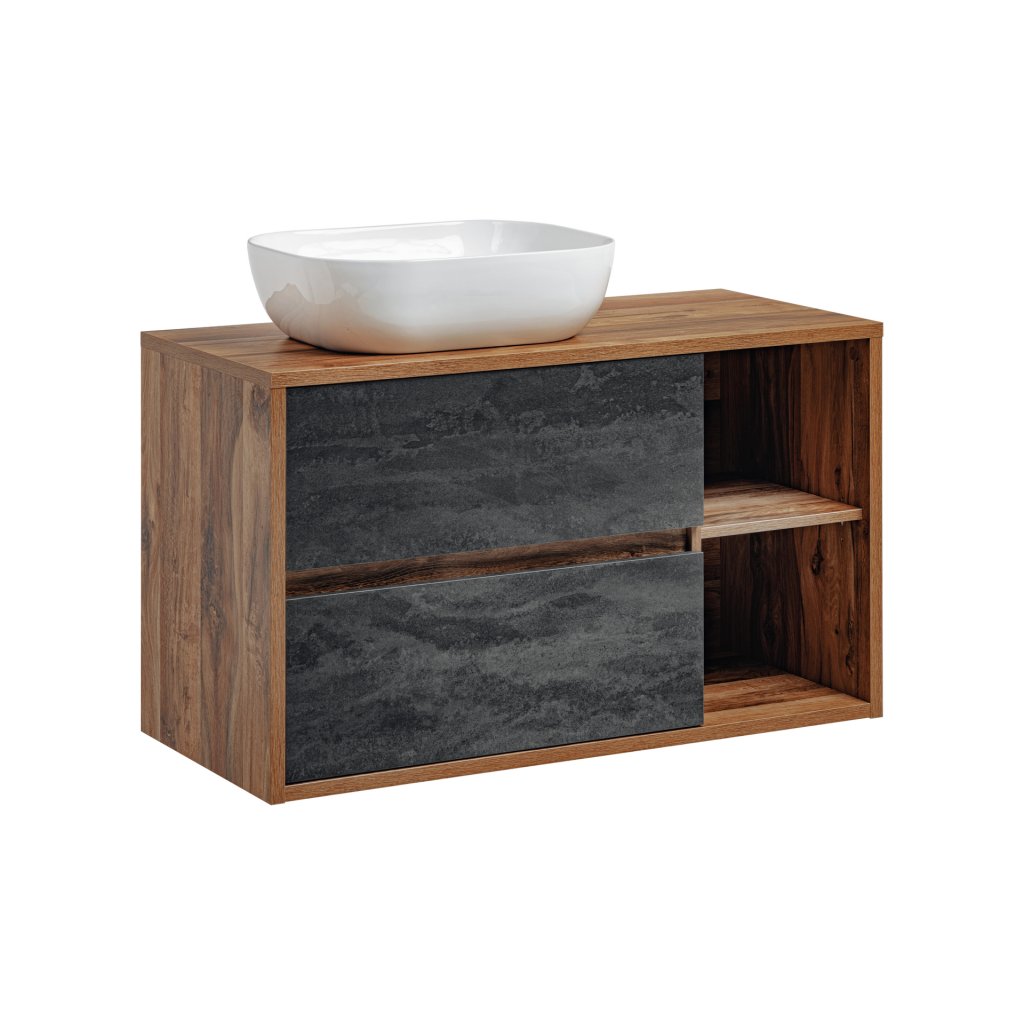 - set obsahuje: 1x zásuvkovou skříňku (100 cm) a 1x keramické umyvadlo na desku