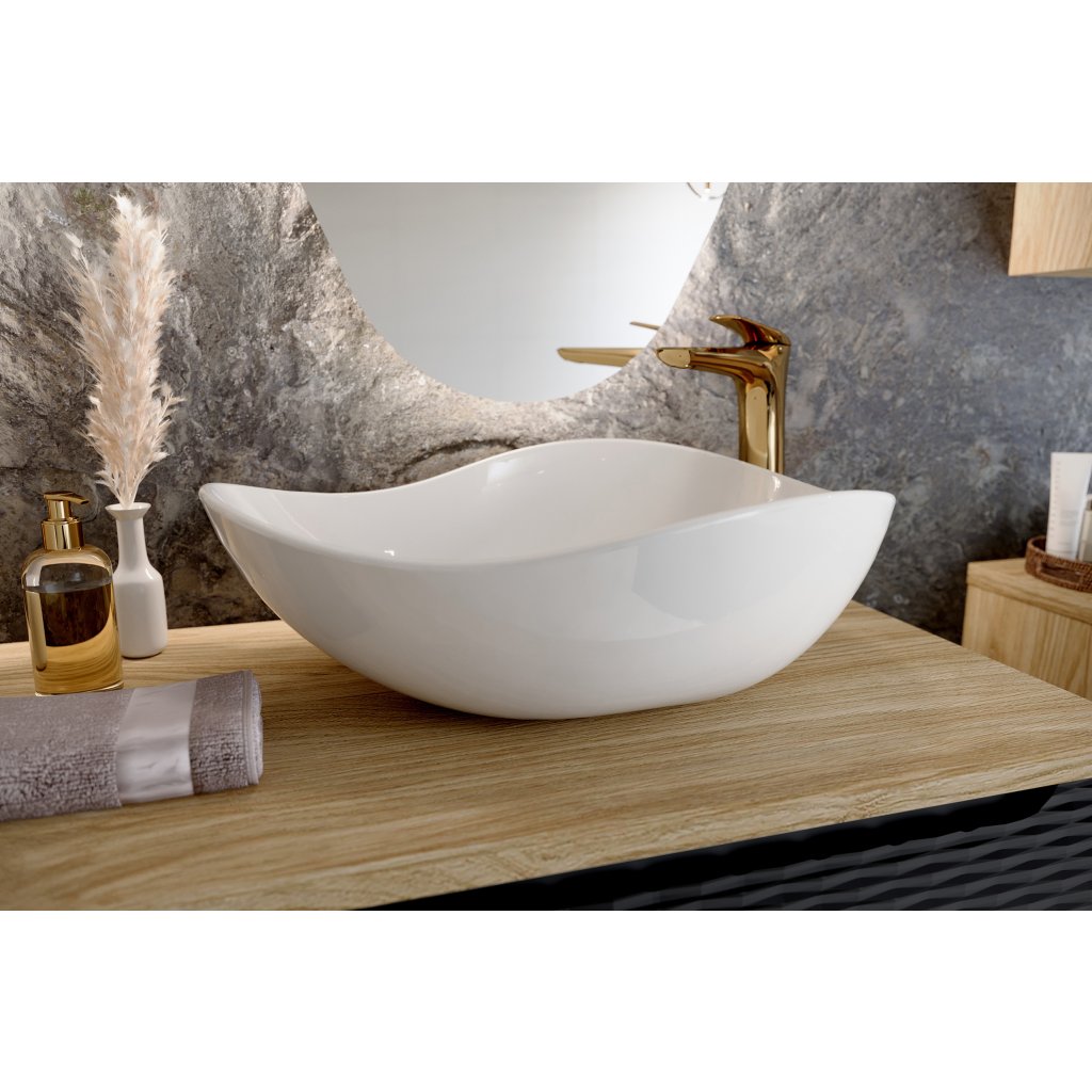 - exkluzivní asymetrické umyvadlo s vysokým leskem a výškou 18,5 cm