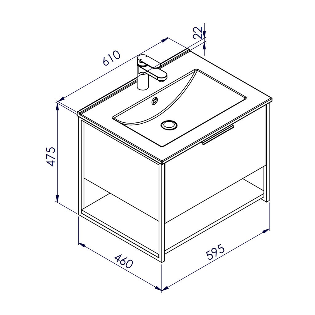 Skříňka s keramickým umyvadlem Kubus W ZV 60 je určena k zavěšení na zeď. Součástí skříňky je keramické umyvadlo UM-ASU 60 s přepadem a otvorem pro montáž vodovodní baterie.