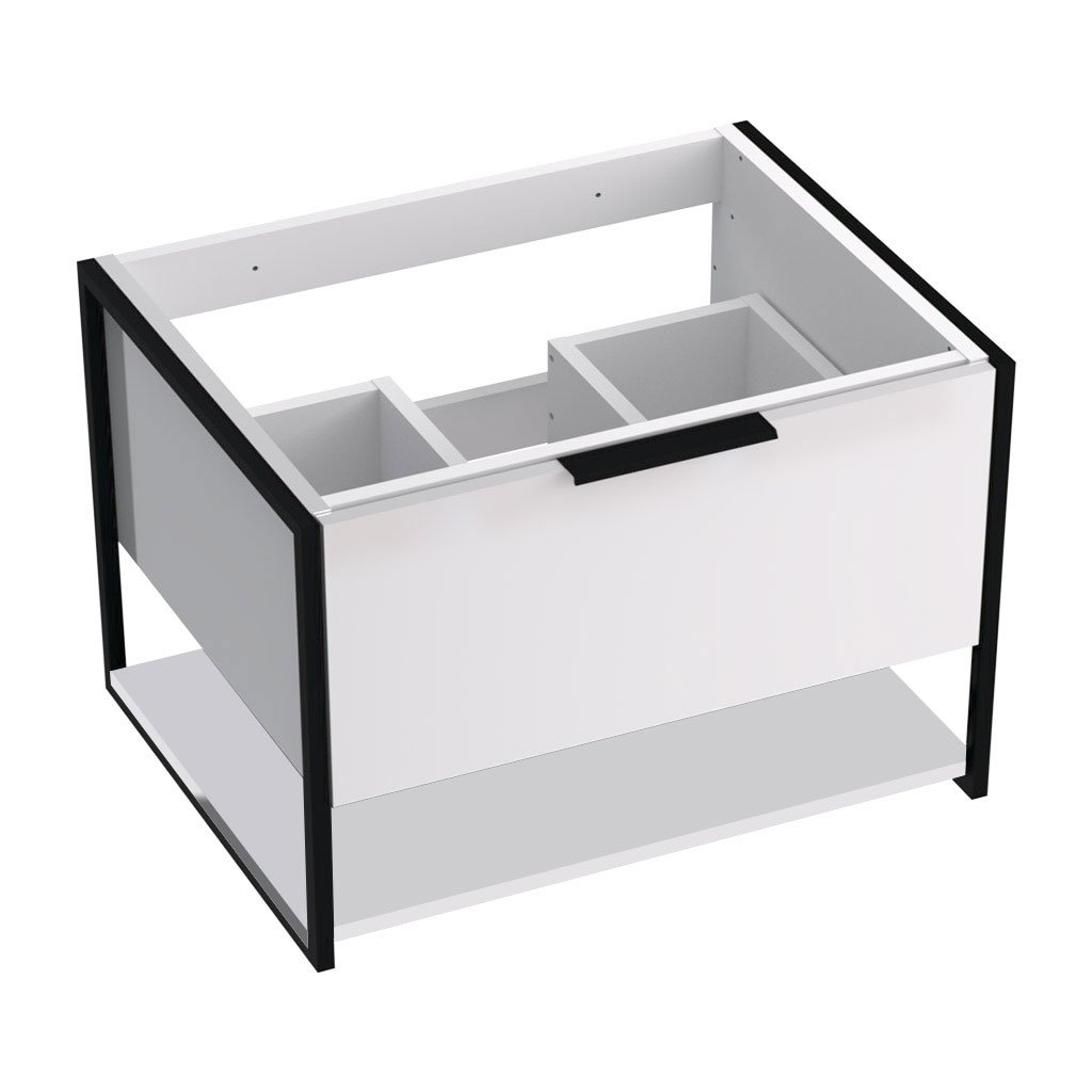 Základ skříněk je tvořen kovovou konstrukcí z tenkostěnných profilů v povrchové úpravě černým matným lakem. Samotný korpus skříňky, čelní plochy a police jsou z LTD desky v povrchové úpravě lesklým bílým lakem. Zásuvky a dvířka jsou doplněny kovovými úchytkami v povrchové úpravě černým matným lakem.