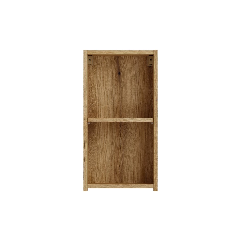 Vnitřní prostor regálu je rozdělen na dvě otevřené úložné niky. Konstrukce je vybavena jednou nastavitelnou policí, která umožňuje přizpůsobit výšku jednotlivých oddílů podle velikosti vašich doplňků, a jednou pevnou policí tvořící dno. Celý modul je vyroben z odolné laminované desky (LTD), která zaručuje stabilitu a snadnou údržbu. Velkou výhodou je univerzálnost a plná kompatibilita se sérií Nova, díky čemuž můžete tento dubový regál libovolně kombinovat s různými barevnými variantami skříněk a vytvořit si tak koupelnu přesně podle svého vkusu.