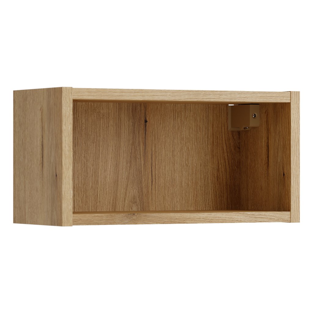 Horní otevřený regál z kolekce Nova Coast Evoke o šířce 40 cm představuje stylový a variabilní prvek pro moderní koupelnové sestavy. Dekor dub coast evoke s autentickou strukturou a hřejivým odstínem dřeva vnáší do interiéru pocit útulnosti a harmonie. Díky své šířce a nízké výšce slouží tento modul jako elegantní horizontální prvek, který efektivně využívá prostor na stěně a zároveň umožňuje okamžitý přístup k nejpoužívanějším koupelnovým doplňkům.