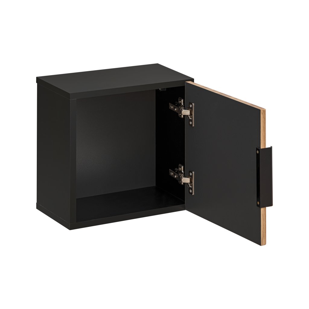 Horní skříňka Qubik o rozměrech 35x35 cm z kolekce Xilo je navržena pro ty, kteří hledají originální a funkční řešení úložného prostoru. Díky svému čtvercovému tvaru a kompaktní hloubce 22 cm umožňuje vytvářet na stěně zajímavé kompozice, ať už samostatně, nebo v kombinaci s dalšími moduly řady Xilo. Kontrastní spojení korpusu v barvě skalní šedá a čel v přírodním dekoru dub wotan dodává interiéru moderní, industriální nádech.