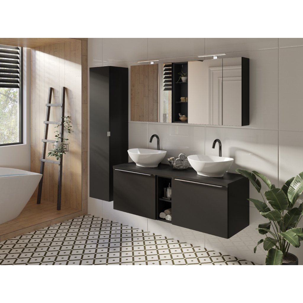Horní otevřená skříňka z kolekce Santa Fe Black je navržena jako variabilní prvek, který dodá vaší koupelně moderní vzhled a praktický úložný prostor. Celé provedení v barvě černý mat působí luxusním dojmem a skvěle ladí s industriálním nebo minimalistickým stylem interiéru. Tento 20 cm široký modul slouží k vyplnění mezer v sestavě nebo jako samostatný designový regál na stěnu.