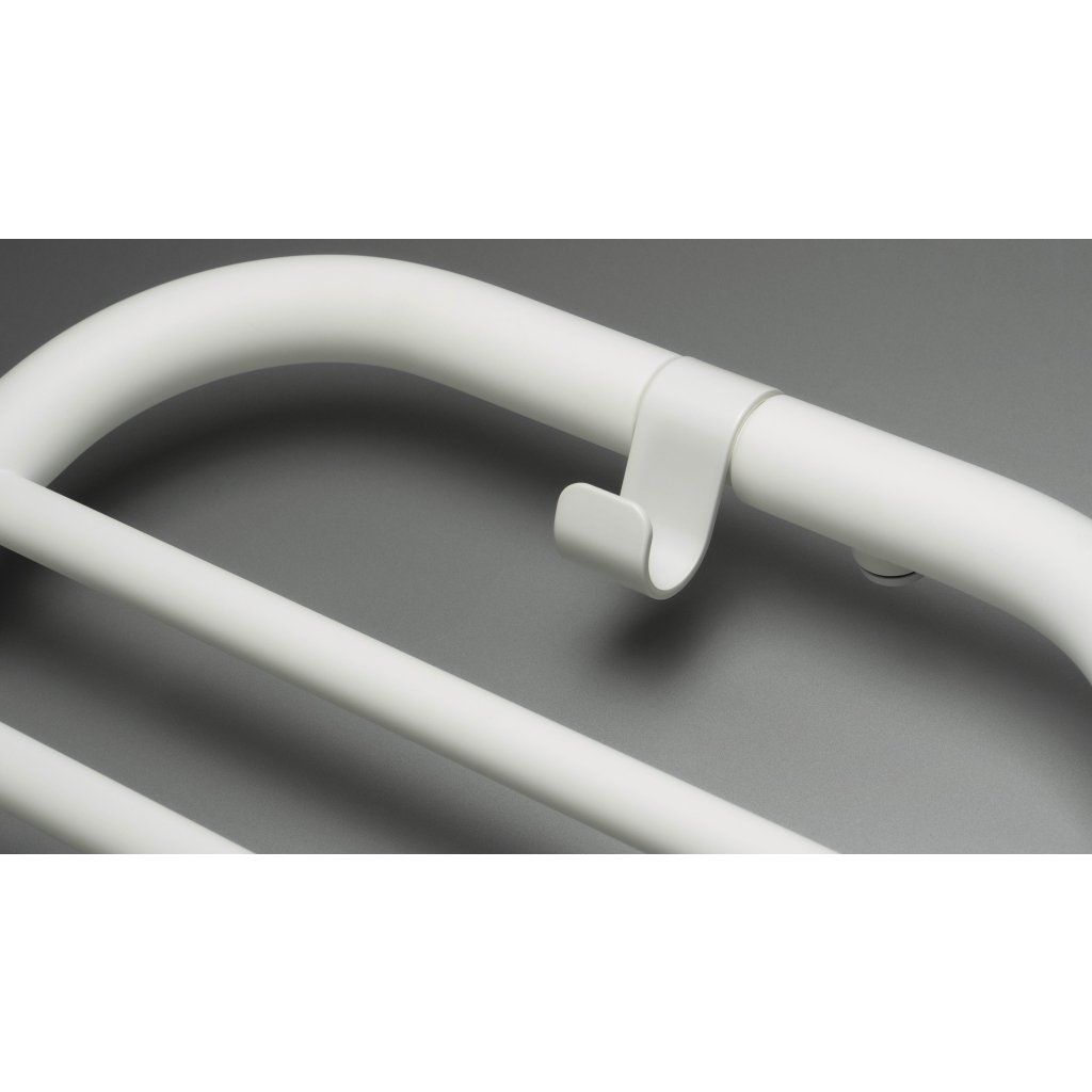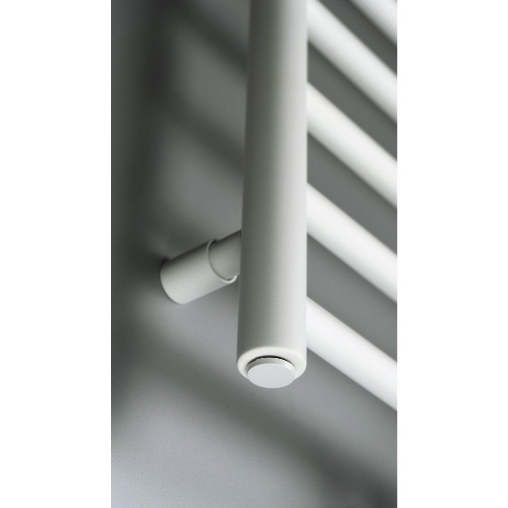 Stylový koupelnový radiátor, vyznačující se hladkými liniemi a unikátní povrchovou úpravou bílou matnou barvou. Radiátor má integrovaný praktický háček na zavěšení ručníku nebo županu. Jde o hybridní model: voda a elektřina, umožňující instalaci volitelného 400 W el. topného tělesa s termostatem, které zajistí přitápění nebo sušení ručníků mimo topnou sezónu. K radiátoru je nutné dokoupit ventil. Volitelné el. topné těleso i potřebný ventil jsou k dispozici ve stejné barvě jako radiátor.