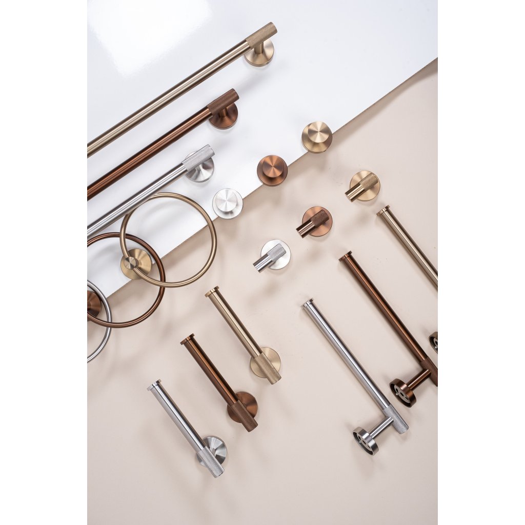Kruhový design poskytuje pohodlný způsob zavěšení ručníků, zatímco drážkovaný detail na držáku dodává moderní nádech.