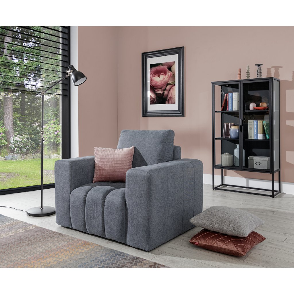 Křeslo Megis bude mít dlouhou životnost, protože sedák je vyplněn vysoce odolnou HR pěnou, která poskytuje dobrou oporu tělu a po vstání rychle získává původní tvar. Rozměry nábytku: Díky rozměrům 102 x 94 x 87 cm se snadno vejde do mnoha interiérů. Megis má nadčasový design a vysoké područky s jemným prošíváním.Charakteristickým rysem křesla jsou navíc jeho 13 centimetrů dlouhé nohy, které jsou vyrobeny z černé oceli. K dispozici je také odpovídající pohovka Megis a puf.
