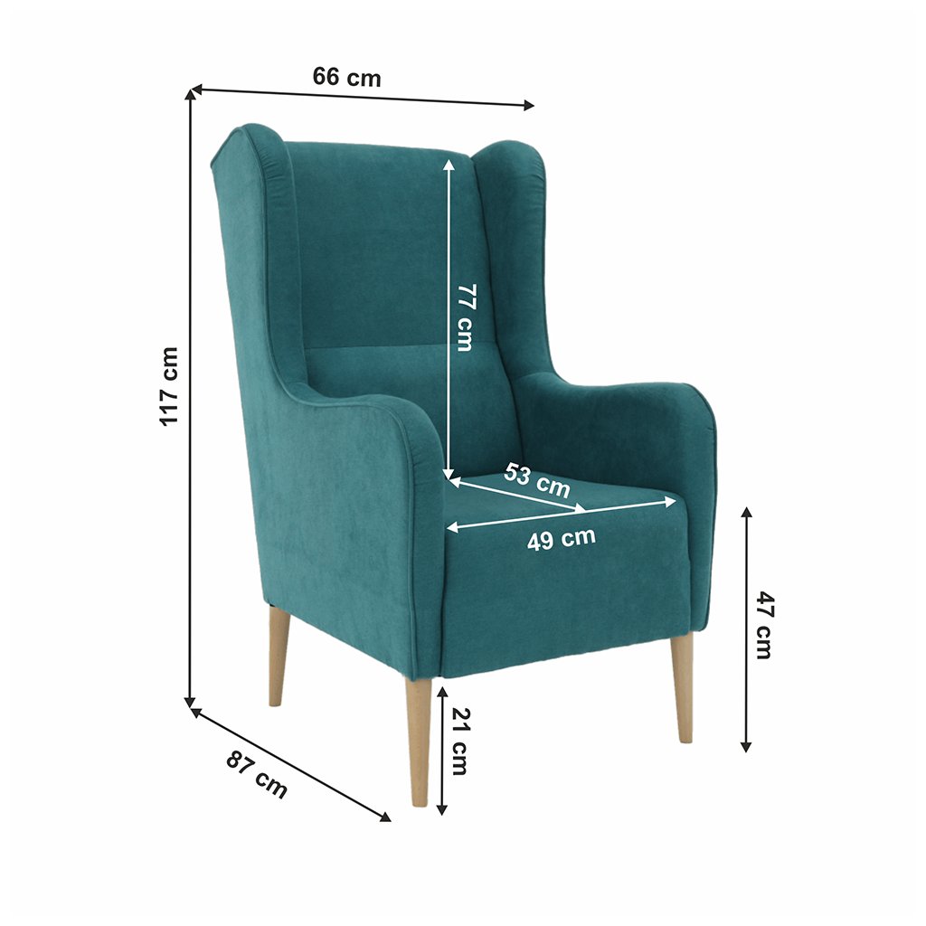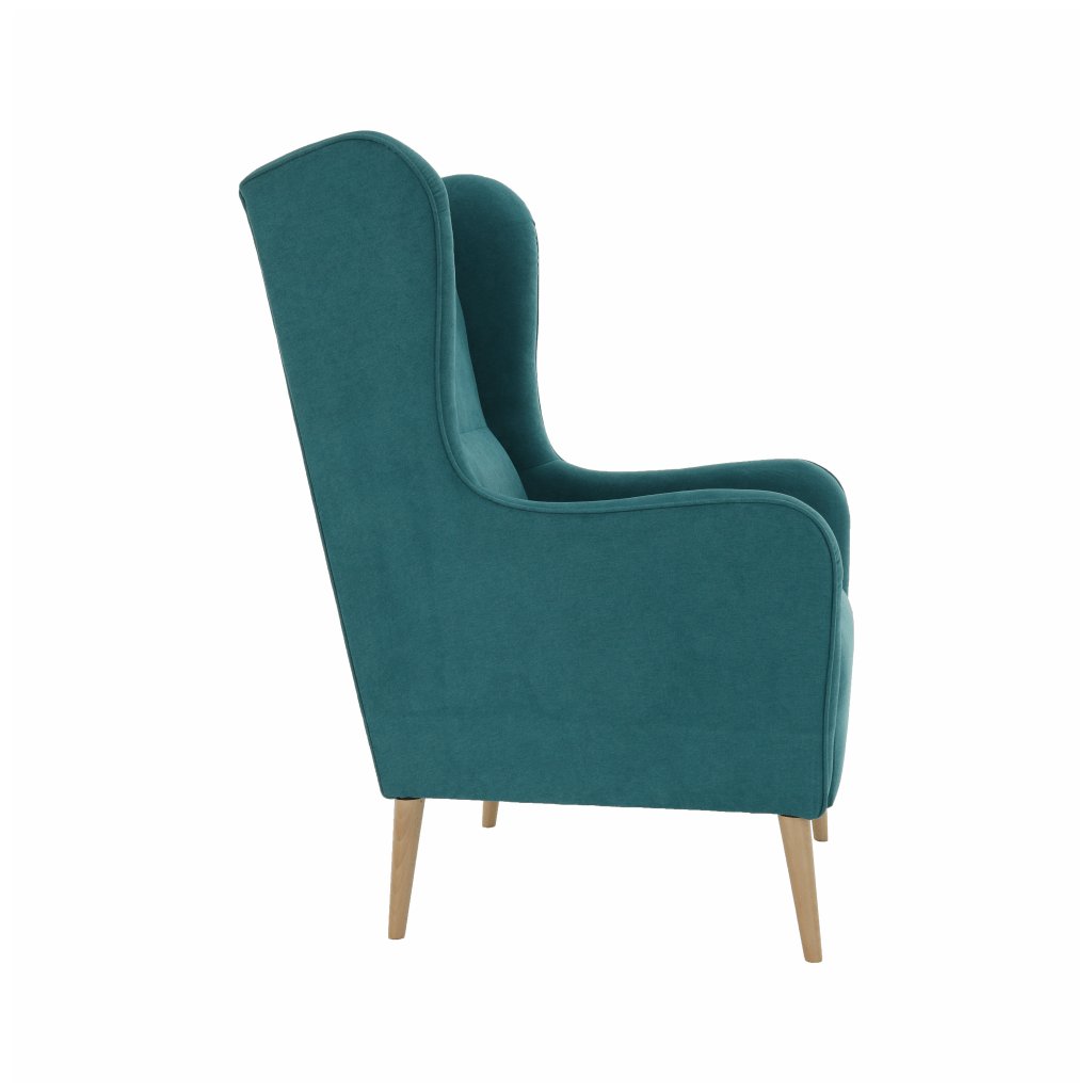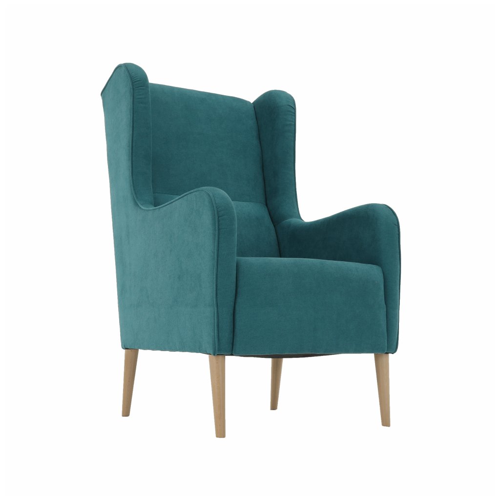 Křeslo ušák, tyrkysová/buk, BREDLY