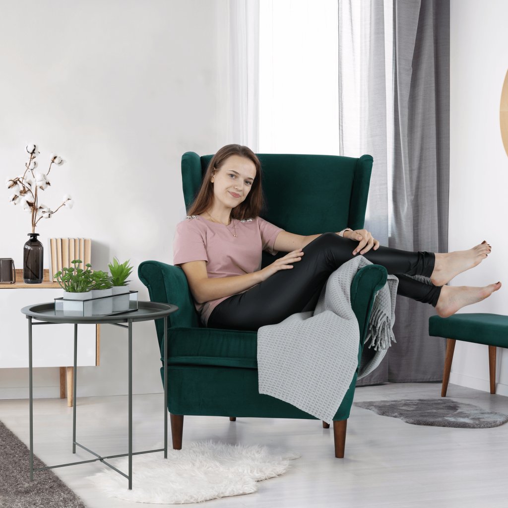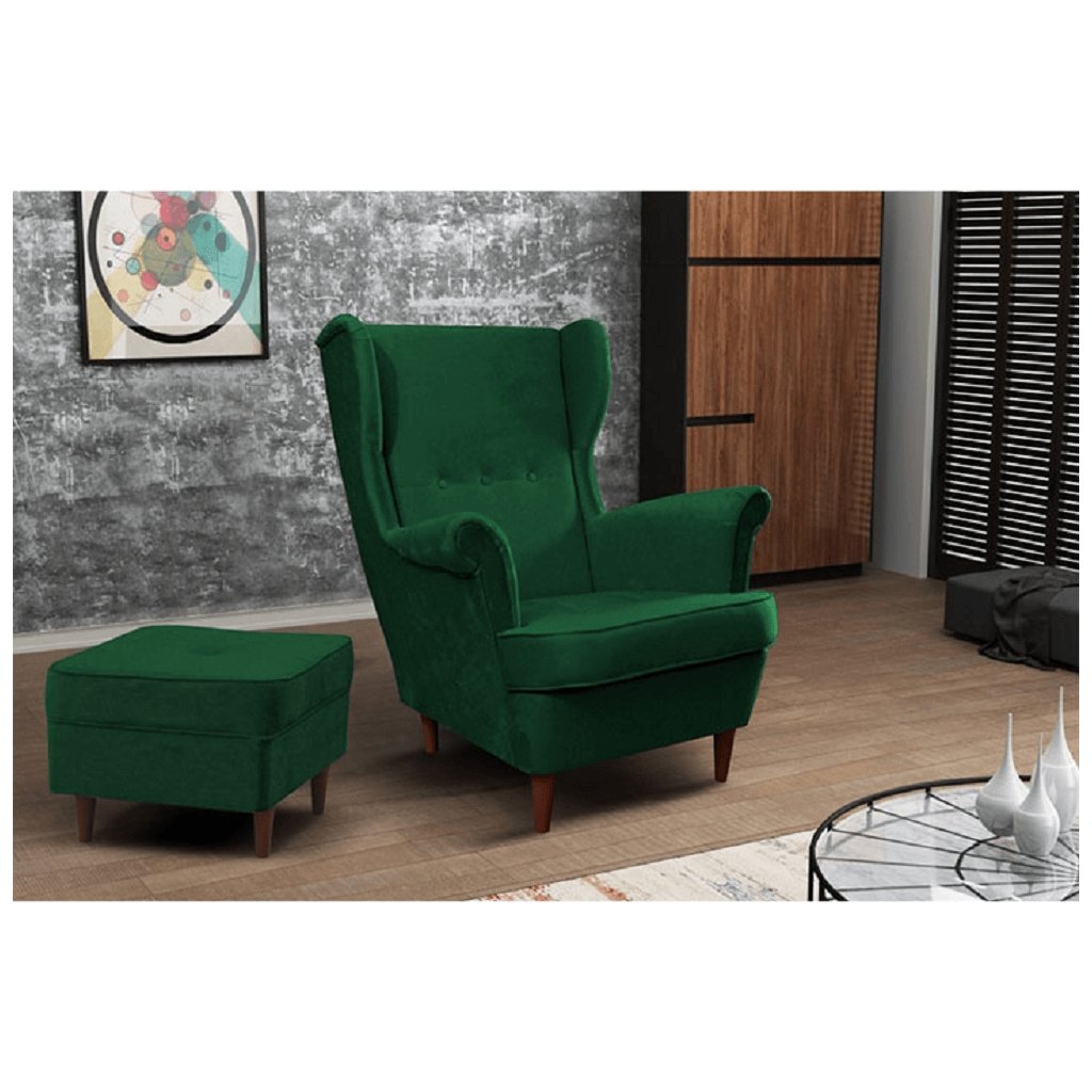 Křeslo ušák, zelená/ořech, RUFINO 3 NEW