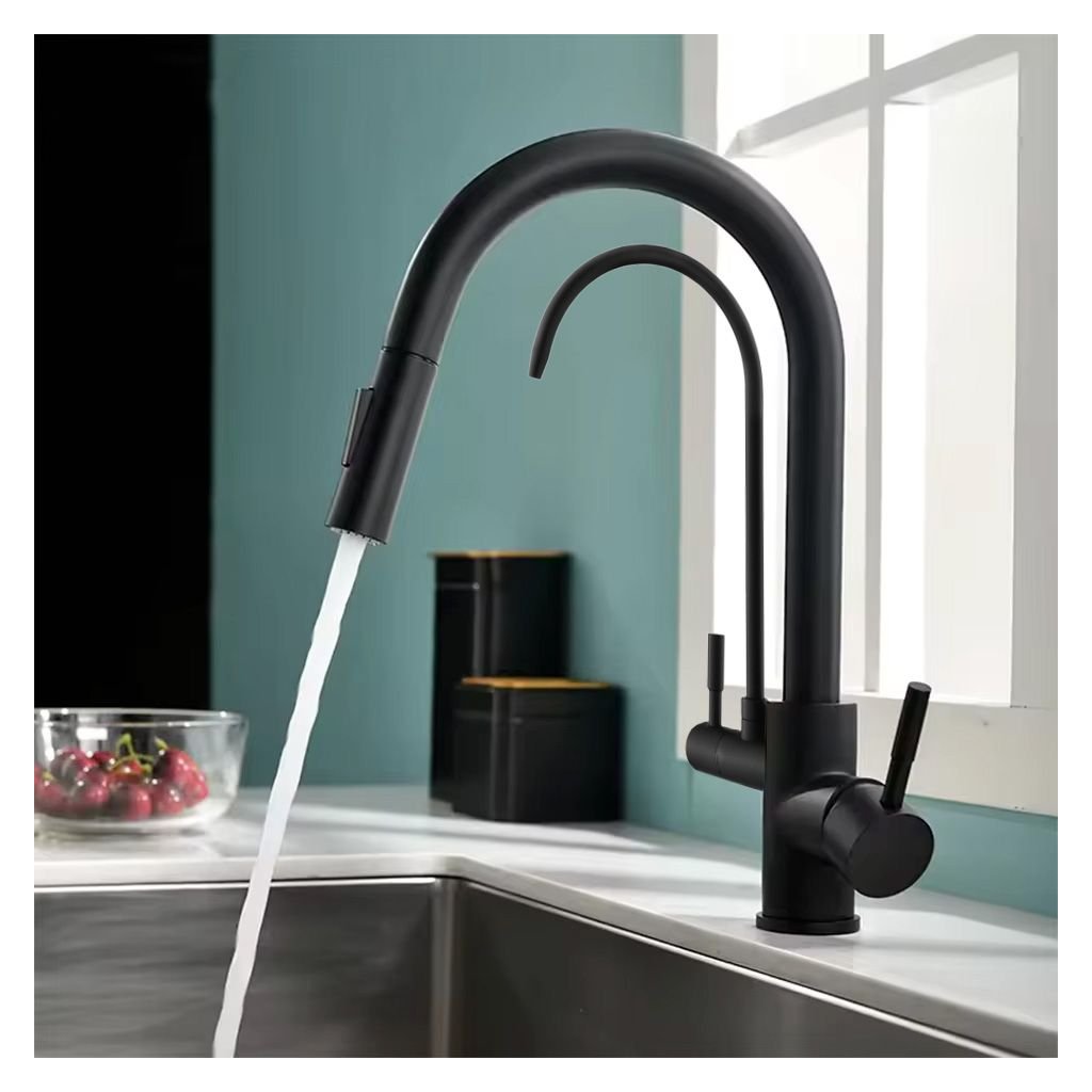 Kuchyňská baterie REA ECO FRESH s připojením na filtr a sprškou, černá mat