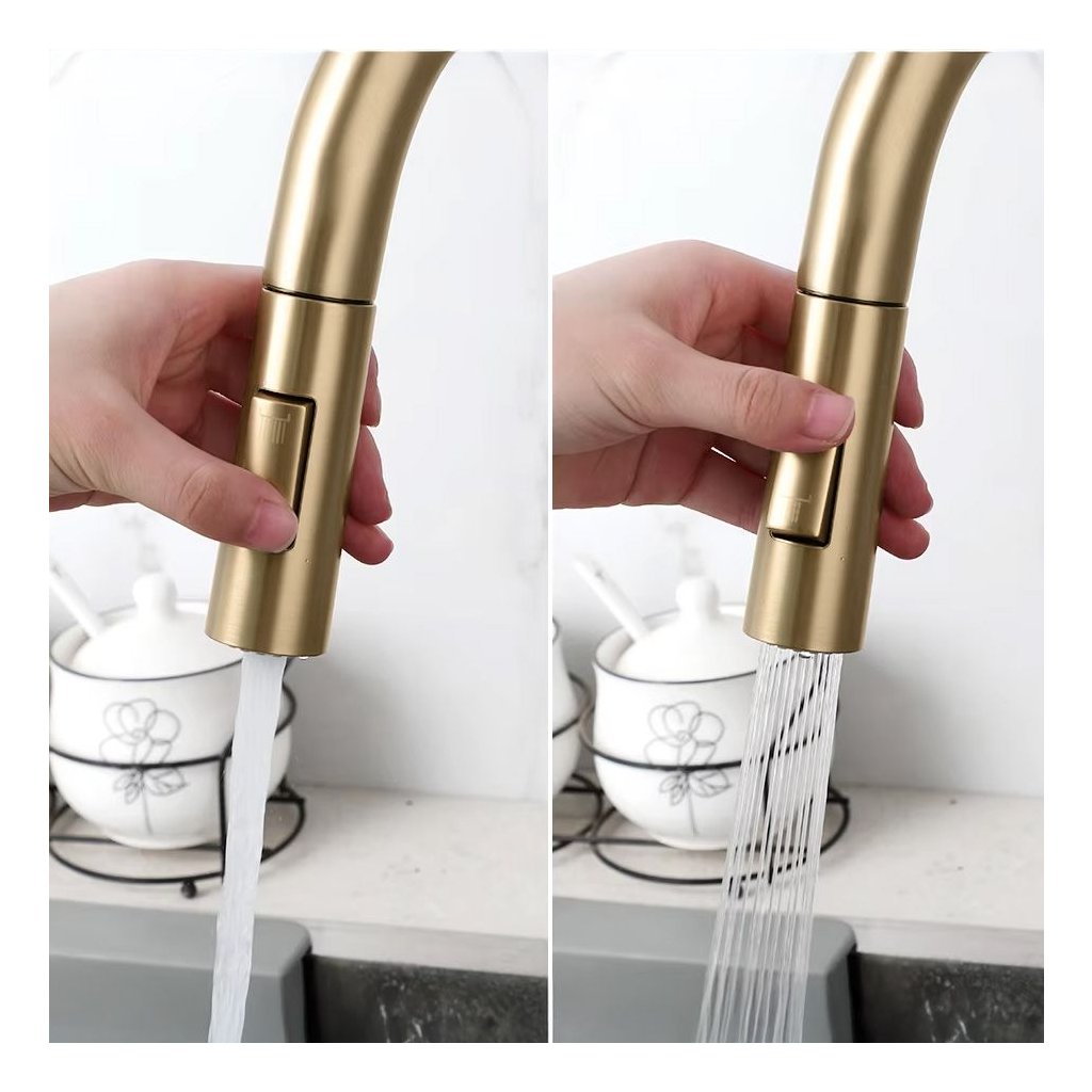 Kuchyňská baterie REA ECO FRESH s připojením na filtr a sprškou, zlatá kartáčovaná