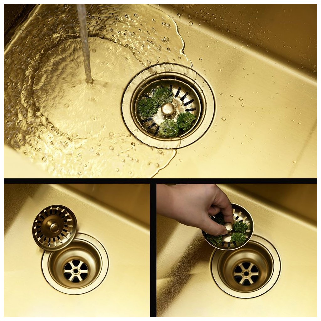 Kuchyňský nerezový dřez REA LEO 50 zlatá kartáčovaná v setu s pákovou baterií
