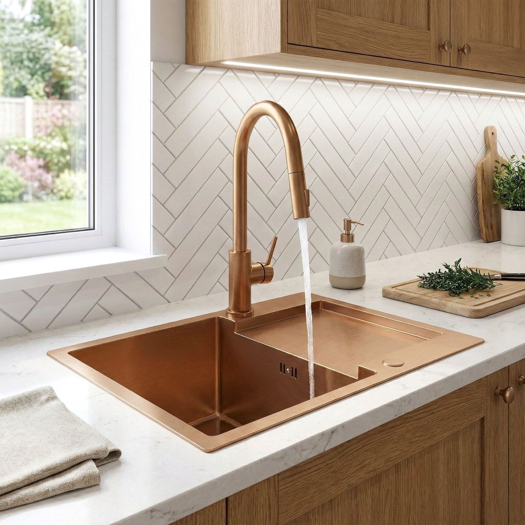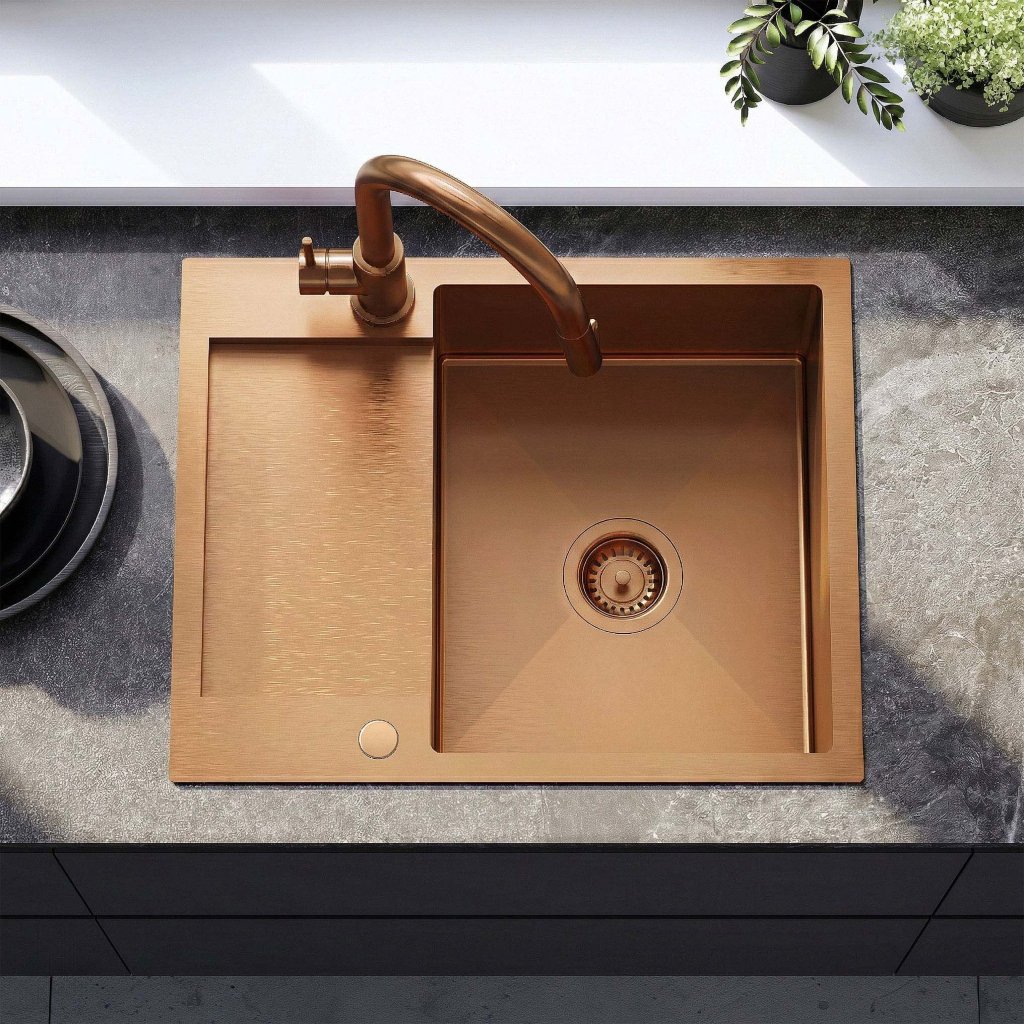 Kuchyňský nerezový dřez REA PAUL BRUSH COPPER v setu s pákovou baterií, kartáčovaná měď