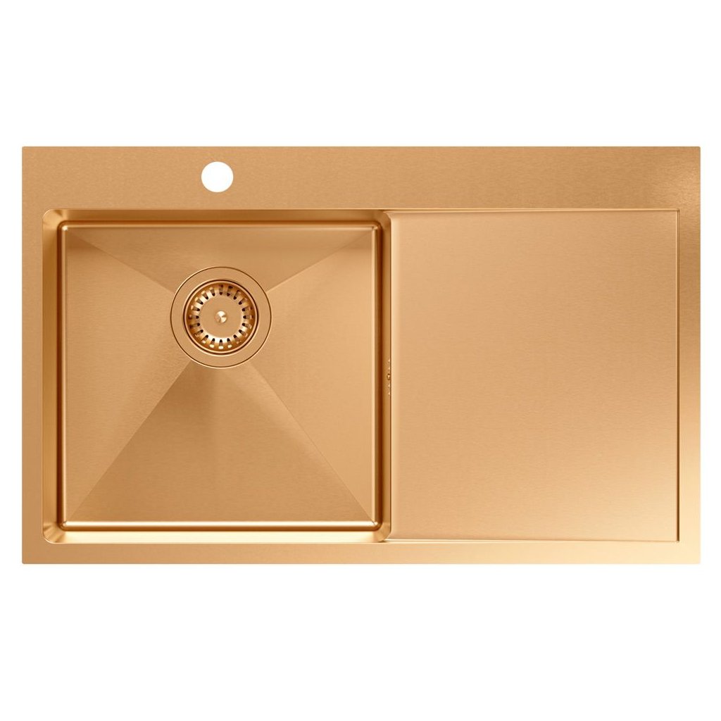 Kuchyňský nerezový dřez REA RUSSEL 111 měděný, mycí komora vlevo