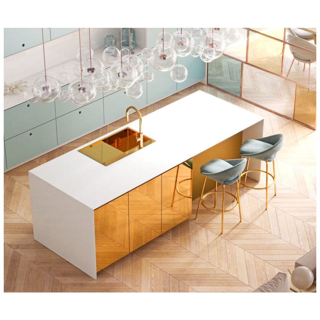 Kuchyňský nerezový dřez REA RUSSEL 111 zlatý, mycí komora vlevo