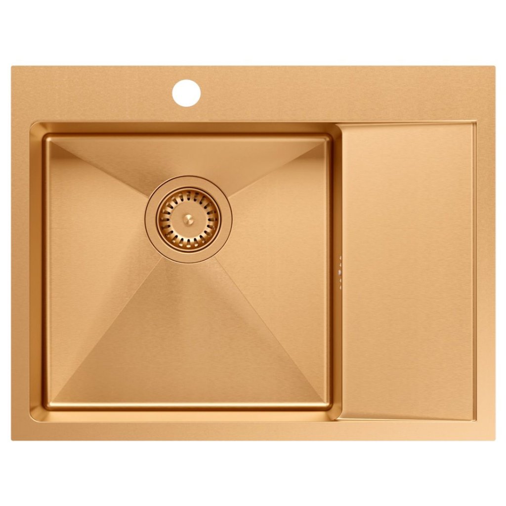 Kuchyňský nerezový dřez REA RUSSEL 116 měděný, mycí komora vlevo