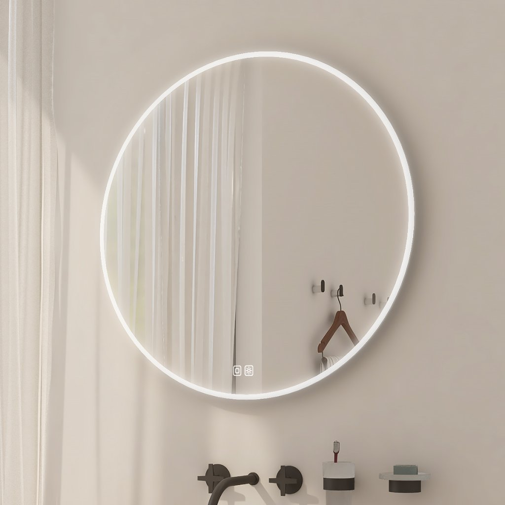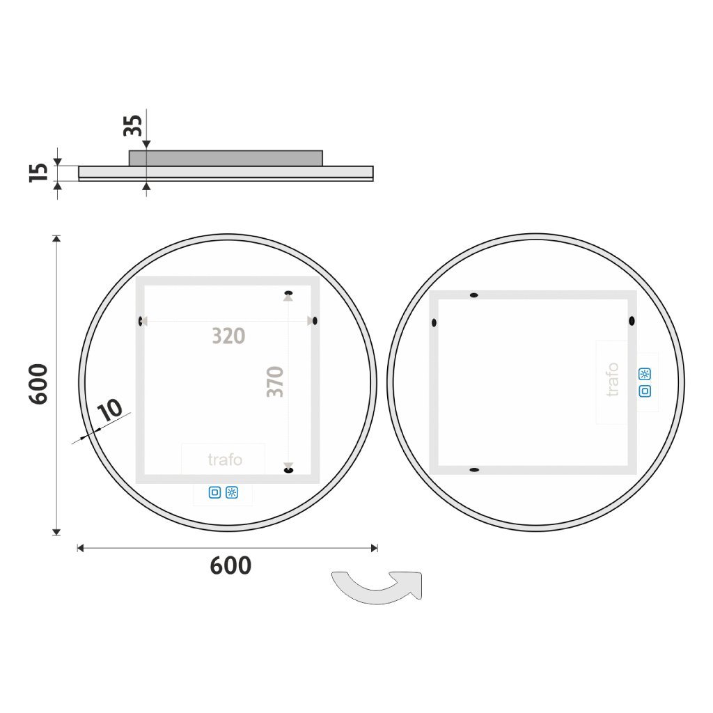 Kulaté zrcadlo do koupelny 60 cm s osvětlením, dotykový spínač je skvělým doplňkem do koupelny. Zrcadla do koupelny NIMCO vynikají kvalitním zpracováním a moderním designem. Svícení za použití akrylátového skla, plexiglass. Konstrukce pro uchycení zrcadla je z hliníkového rámu 32x19 mm, sklo zrcadla má tloušťku 5 mm. Průměr zrcadla 600 mm. Led pásky jsou ukryté v PVC tubě za sklem zrcadla. Světlo prochází skrz sklo a odráží se po celém obvodu zrcadla, tím vytváří i zajímavý světelný efekt na stěně. Připojení 220-240 V. Ochrana IP 44. Zapínání / vypínání / ovládání je pomocí dotykového senzoru s pamětí. Možnost nastavení barevné teploty svícení a intenzity svítivosti. LED čipy mají vysoký výkon. Životnost LED diod je až 50 000 hodin. Součástí zrcadla je kabelová spojka, IP 44.Koupelnové podsvícené KULATÉ LED zrcadlo
